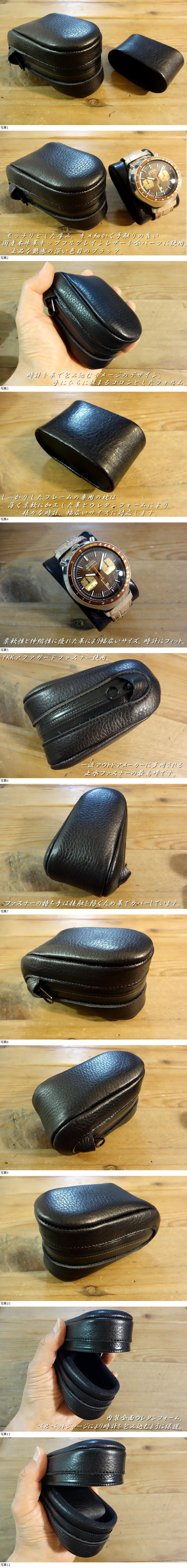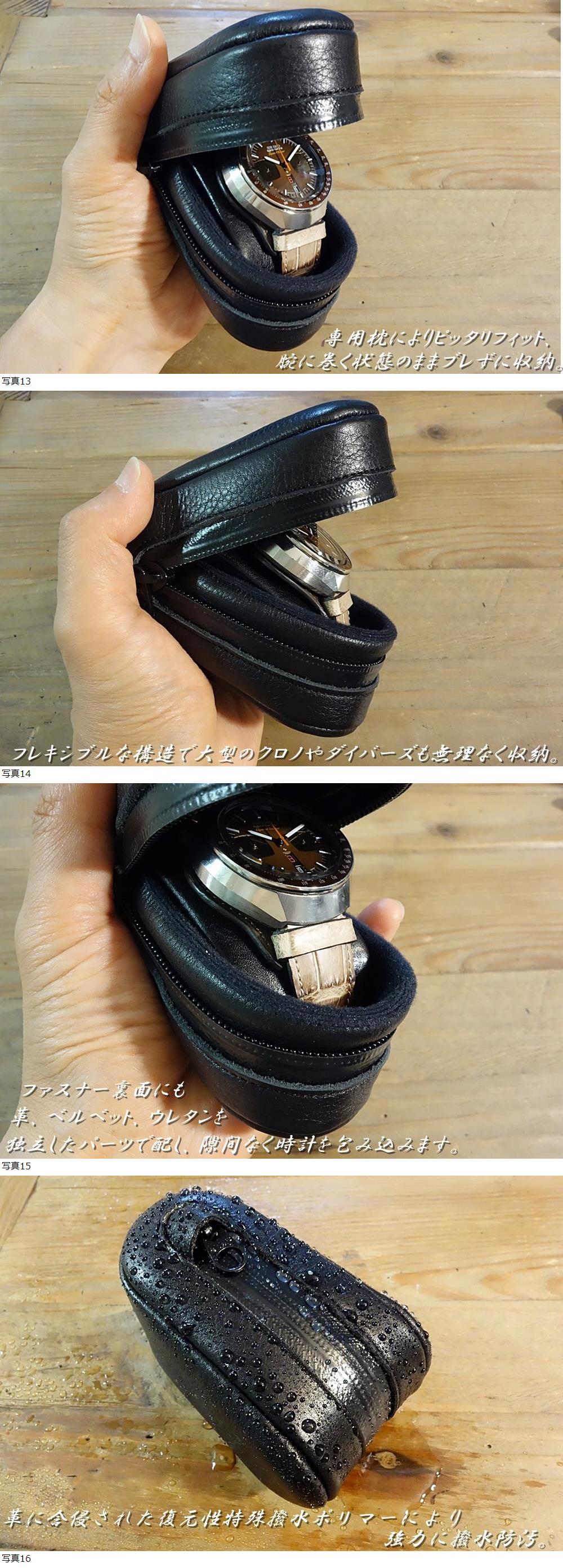 | ◆Watch Bag◆携帯用ウォッチケース 国産本牛革キップフルグレインレザー ブラック 強力撥水 日本製 1本用 |