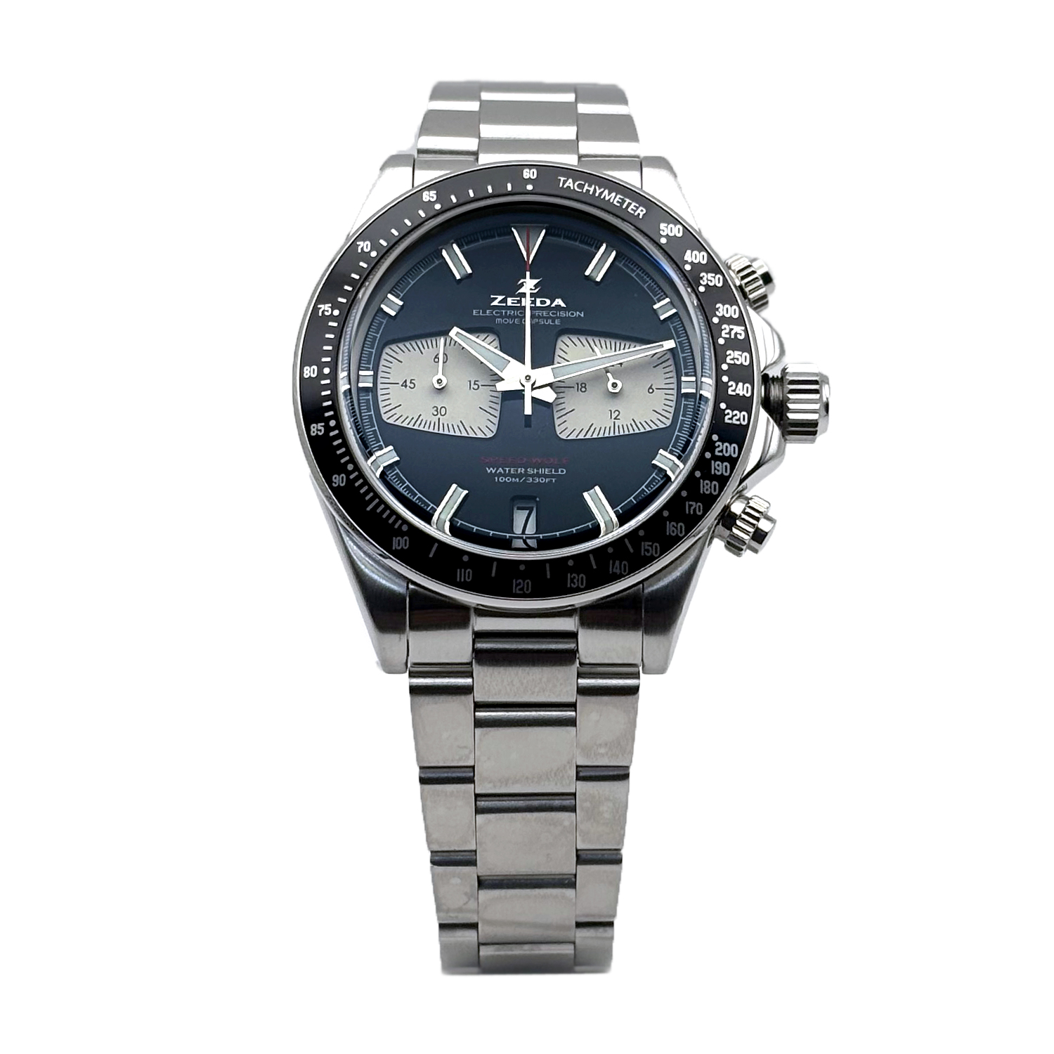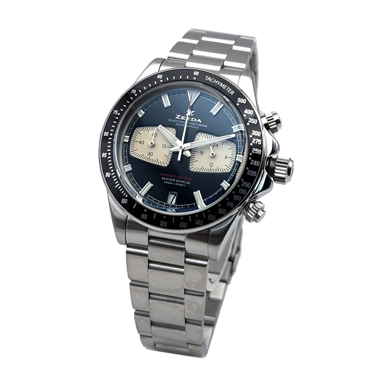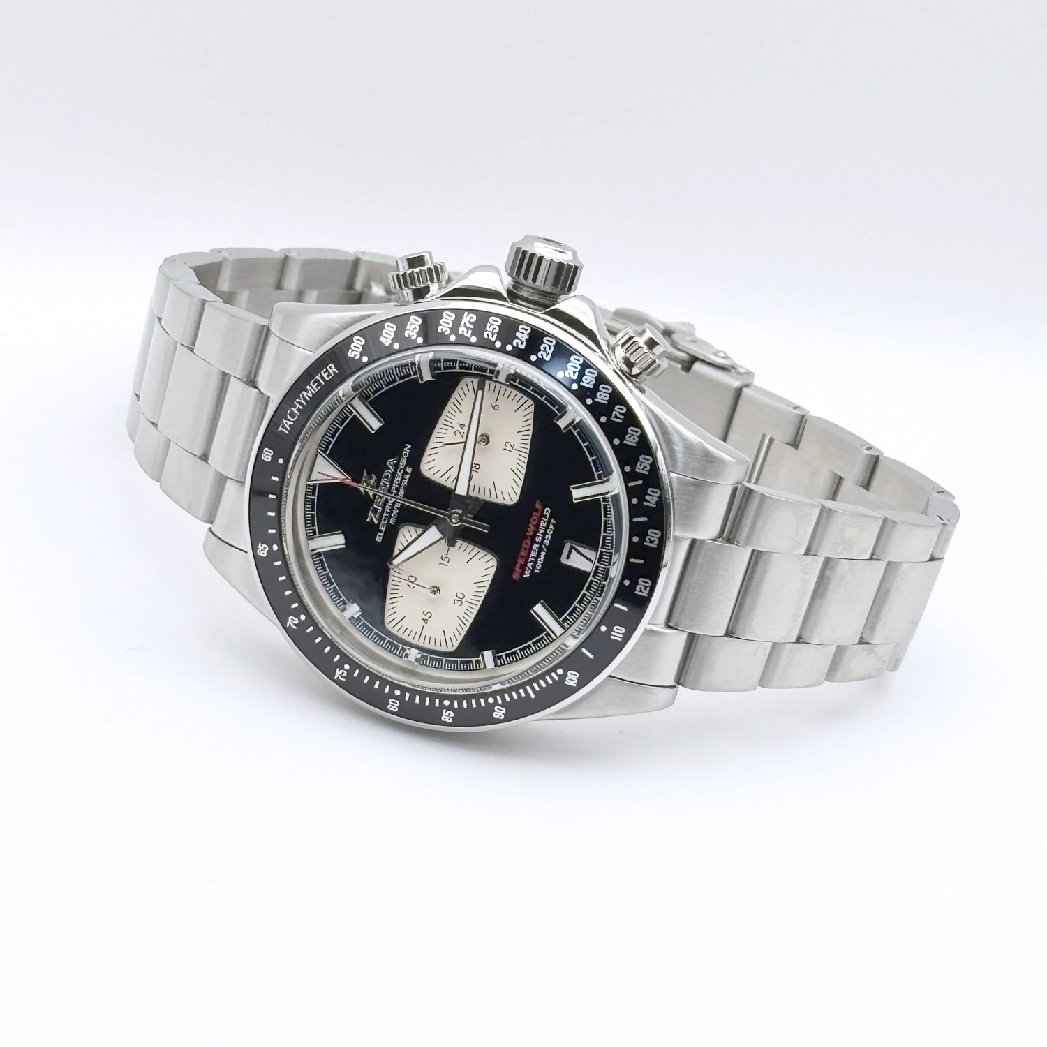 ZEEDA SPEED-WOLF ジーダ スピードウルフ クロノグラフ TMI(SEIKO)ムーブ搭載 ブラック×シルバー メンズ レディース