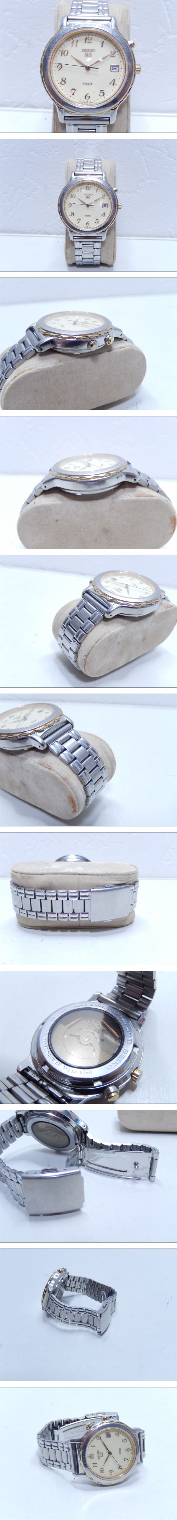 | 【管KA1142】3000円~ SEIKO セイコー AGS SPIRIT 5M22-6A70 コンビカラーベゼル 裏スケ デイト 発電式クオーツ 自動巻 | ||