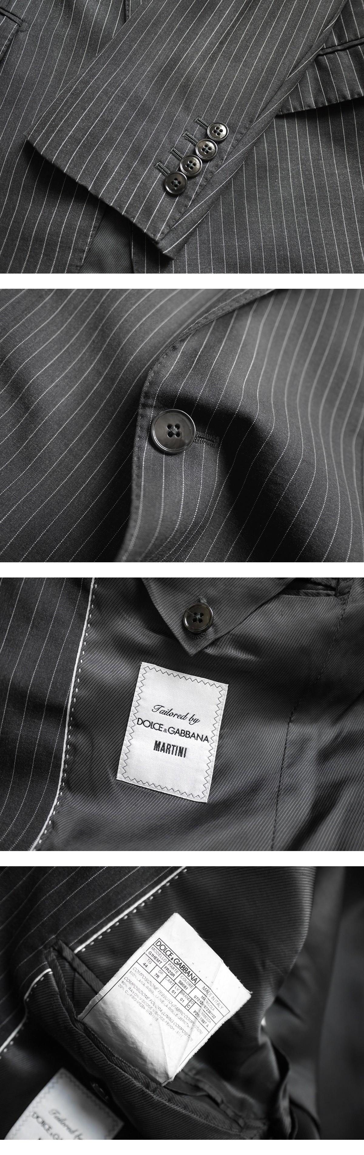 ドルチェ&ガッバーナMARTINI lineのウールギャバジンセットアップスーツでございます。ドルチェ&ガッバーナのブラックタグの最上級コレクションライン、トレンドを再構築し、より洗練されたモードシルエットに改良されたMARTINI lineのモデルとなります。ショルダーラインからウエストにかけての美しいカットラインで、ジャケット単体でもお使いいただける、一般のスーツとは一線を画すデザインセットアップとお考えいただければと思います。