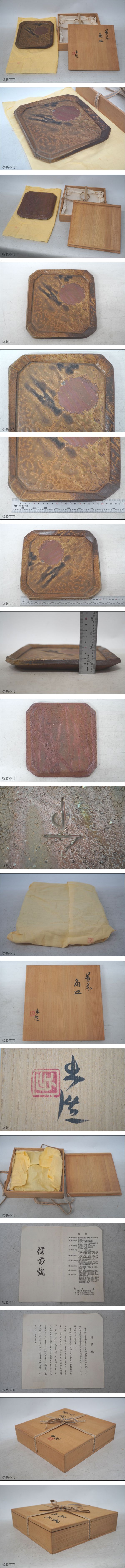 [4-24] 山本出 備前焼 角皿 共箱 共布 栞 和食器 飾り皿 陶磁器 骨董 古美術 時代物 アンティーク Antique | |||