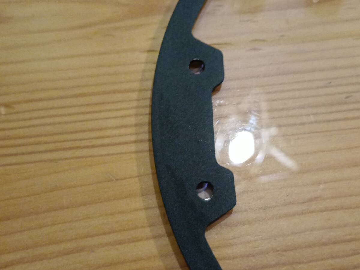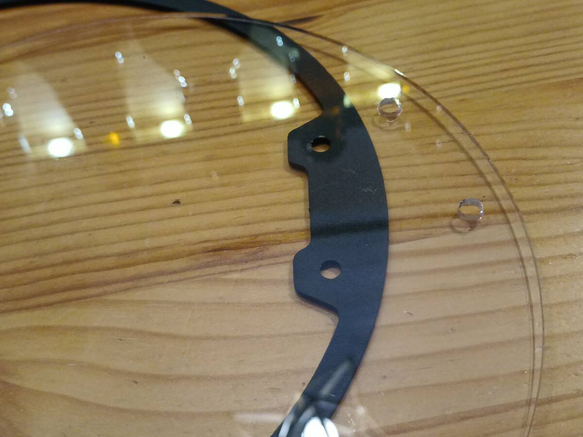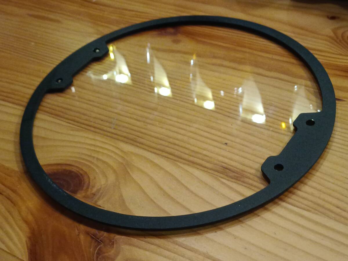 | 汎用 ヘッドライトプロテクター 直径20cm 中古です。ベゼルとクリアカバーのみでステーはありません。 金属のベゼルは錆も無く綺麗な状態です。ザラっとした粉体塗装みたいな感じです。つや消し黒。 アクリルカバーは写真に写らない程度の小傷あります。出品にあたってプラスチッククリーナーで簡単に掃除はしてあります。 装着後2回走行しただけですので日光による劣化はほぼありません。 厚みはベゼル部分が約2ミリ、クリアカバーは2.5ミリほどあります。 | |