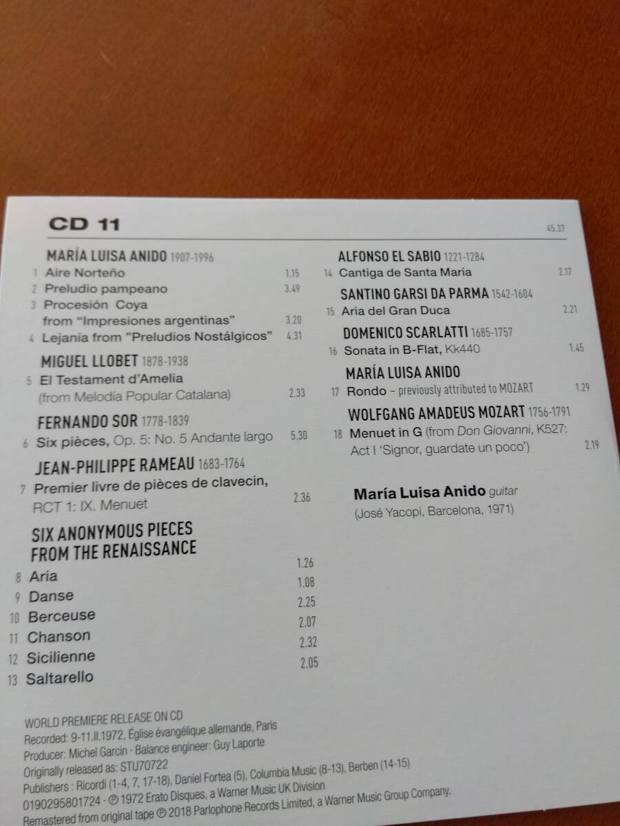 【CD】1972年録音、“Erato”レーベル。マリア・ルイサ・アニードのギター演奏による、名演集。全集からの分売のヨーロッパ盤・簡易紙ジャケCD。盤質、おおむね良好。ジャケット、おおむね良好。送料は実費・定形外郵便=140円。| 出价者 | 信用 | 价格 | 时间 |
