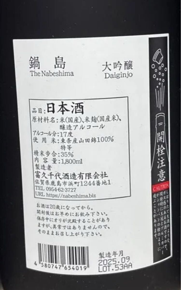 鍋島 東条産山田錦 純米吟醸 35% 1800ml 1本 新品未開栓| 出价者 | 信用 | 价格 | 时间 |
