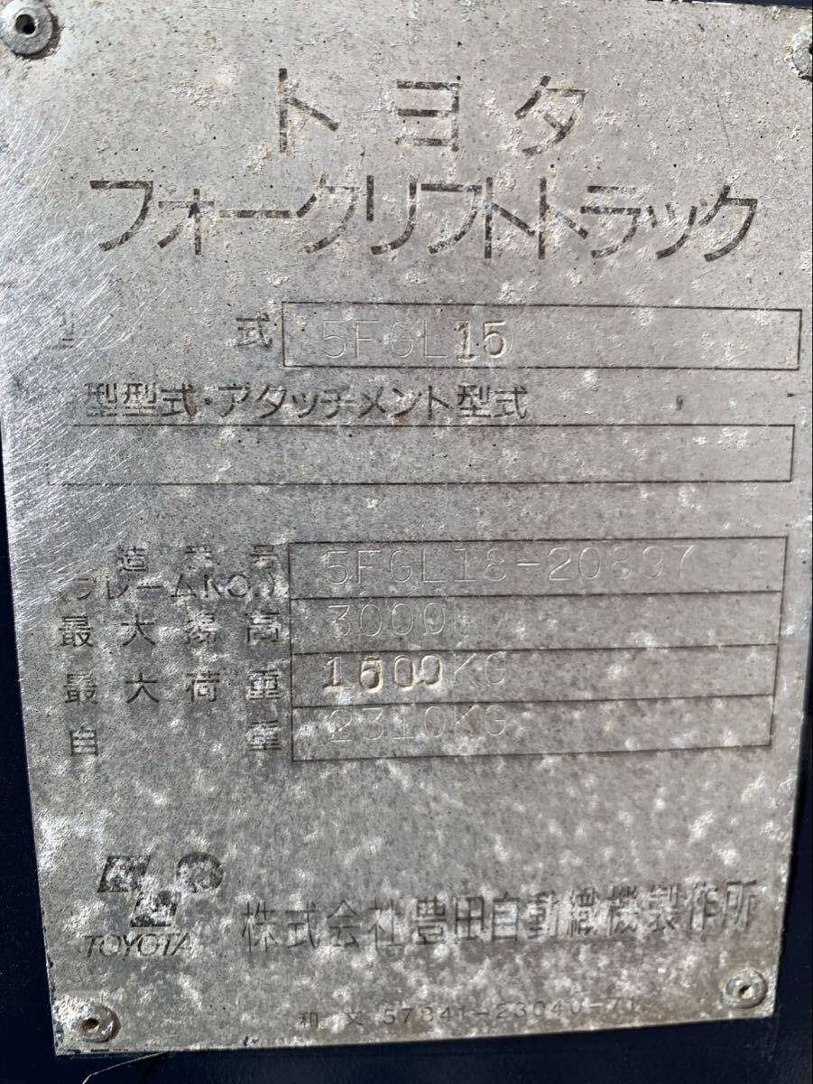 中古 トヨタ 1.5トンクラス フォークリフト 5FGL15 のご案内です。