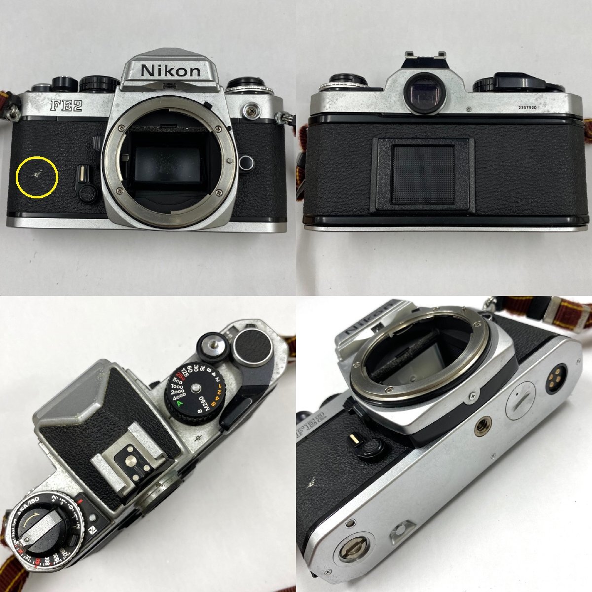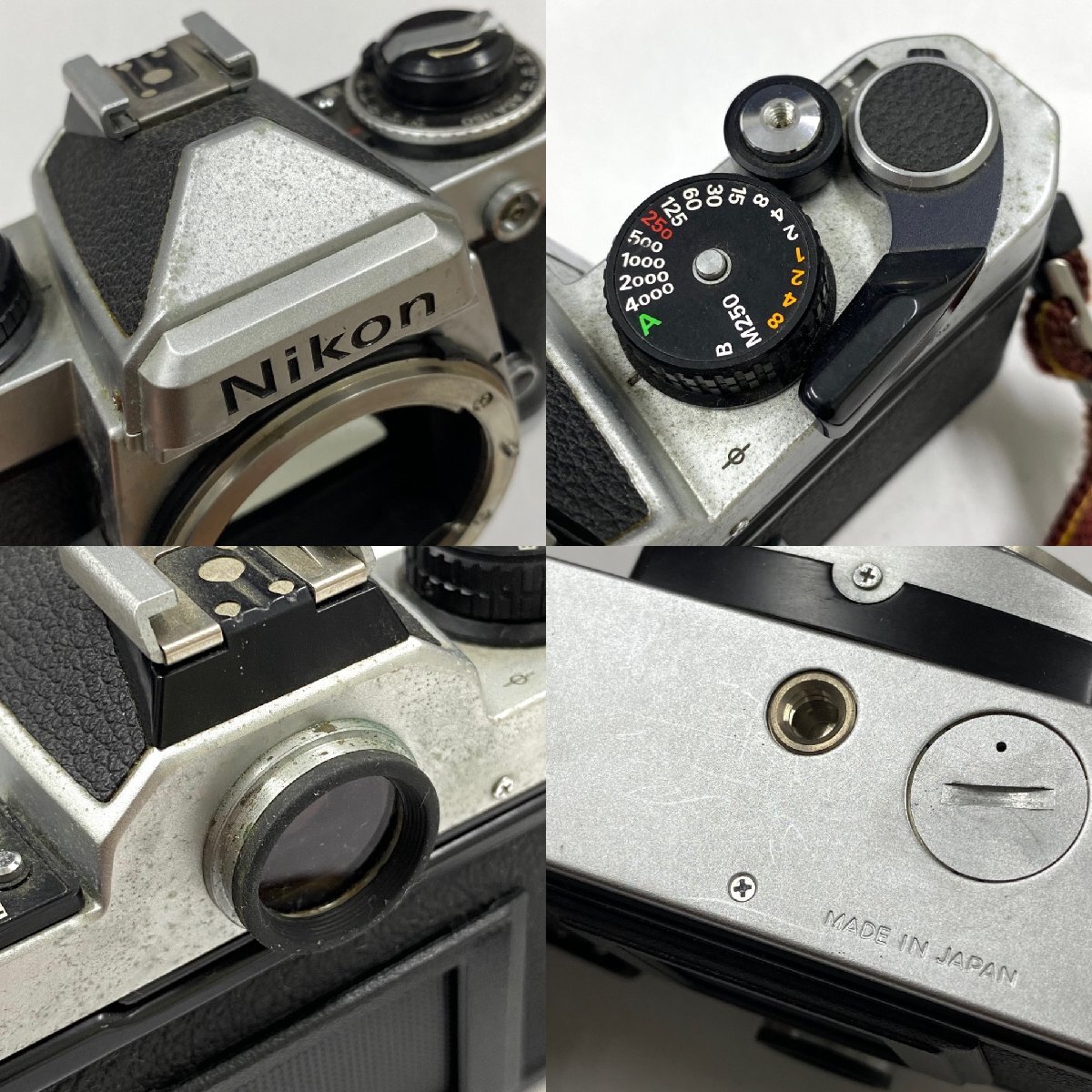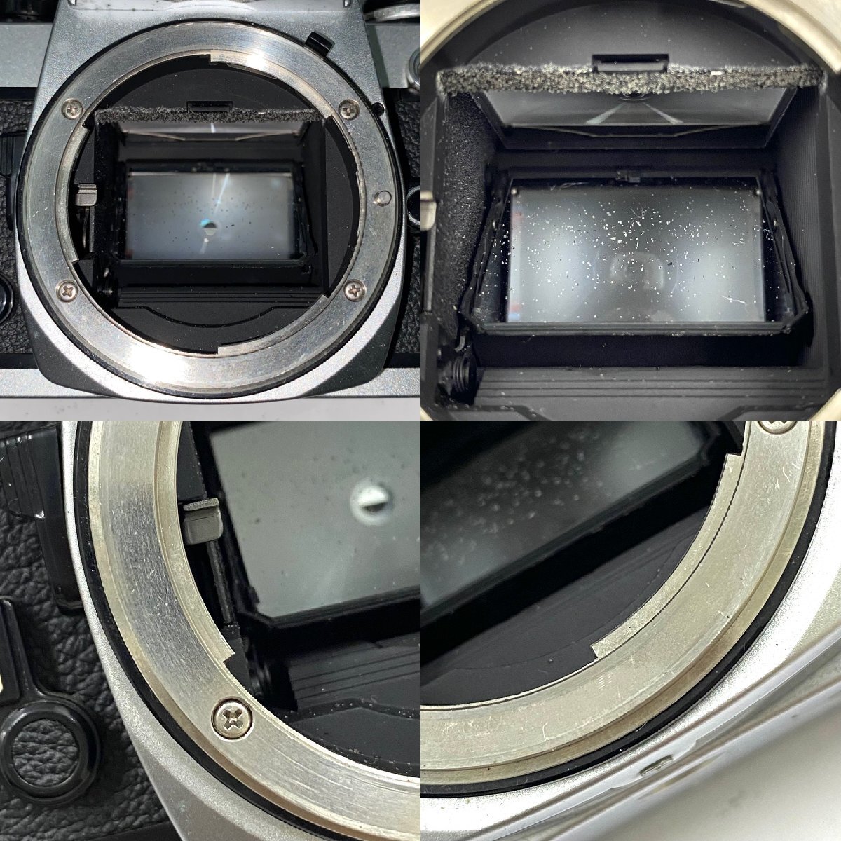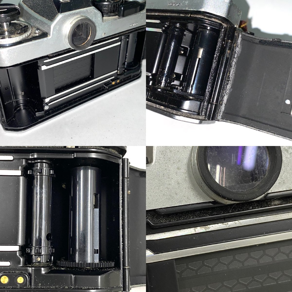 ・正面左側に白い汚れ ・電池カバーが固く開かない(内側の状態未確認) ・グリップに薄らくすみ汚れ ・多数の目立つカビ、底面に薄ら擦れ 【マウント】 ・くすみや擦れ、内側スポンジの劣化や剥がれ落ち、剥がれたスポンジの繊維が内側に付着 【ファインダー】 ・目立つカビやくもり、塵や繊維付着 【フィルム室】 ・縁周りのスポンジの劣化や剥がれ落ち、剥がれたスポンジの繊維が内側に付着 ・スプロールやスプロケットに薄ら擦れ ・フィルムガイドレールに変色や擦れ |