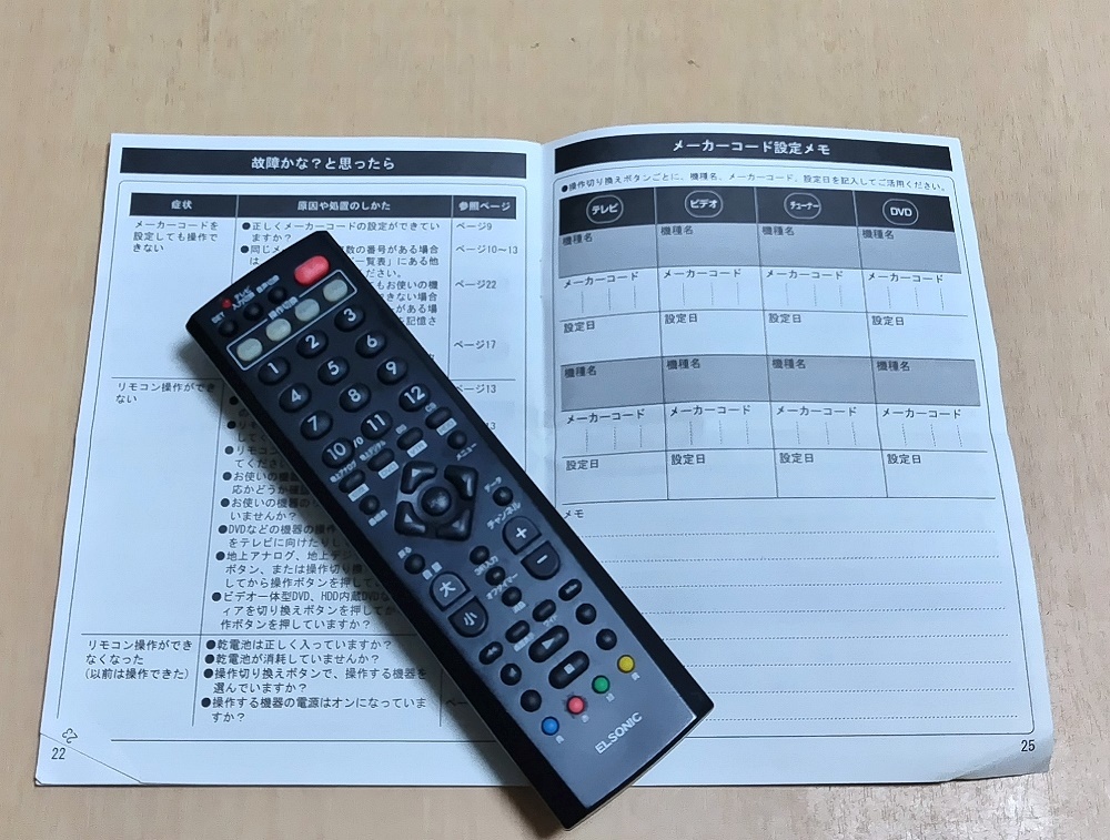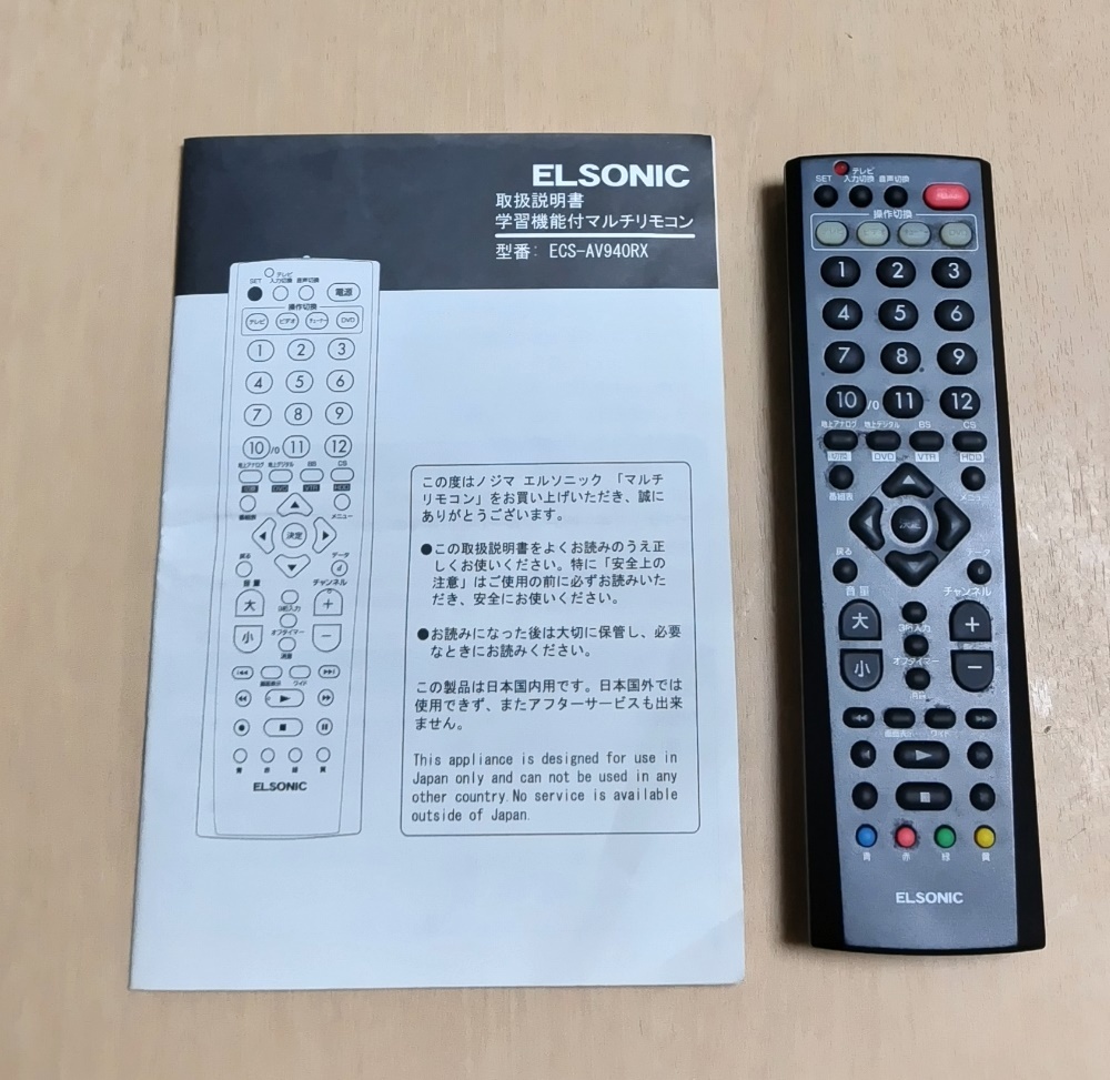 | リモコン本体はおまけ(ジャンク) ★ELSONIC 学習リモコン取扱説明書★ECS-AV940RX | |