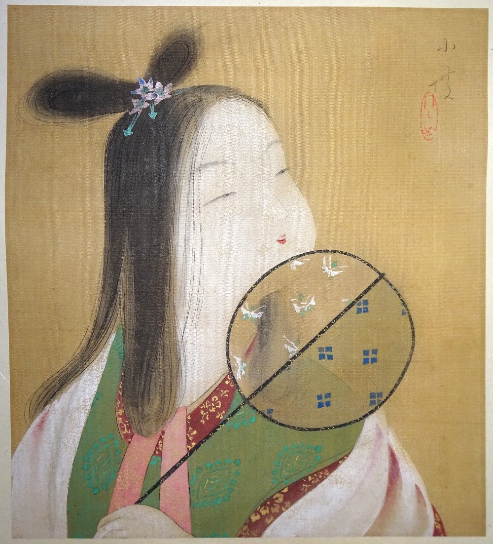 絹本 軸 真筆保証(真作) 裂三段表装風帯つき ウブ幅 中身寸法26.2×23.6 少しヤケ等あり 幅自体しっかりしています よろしくお願い致します