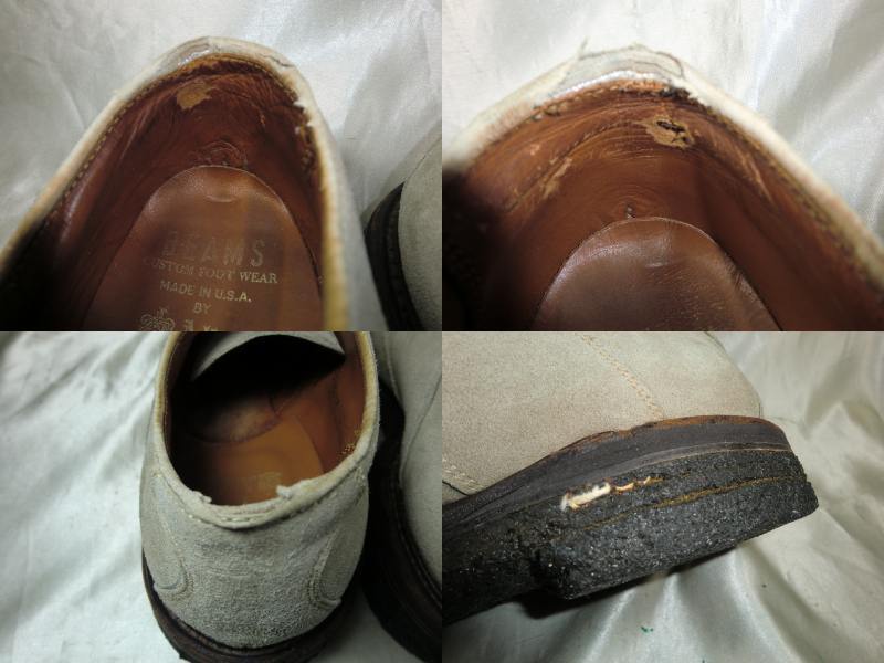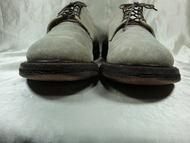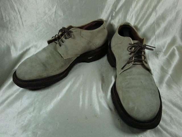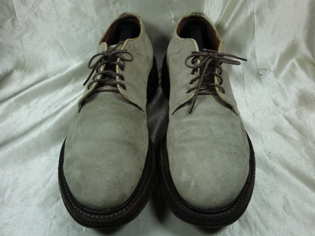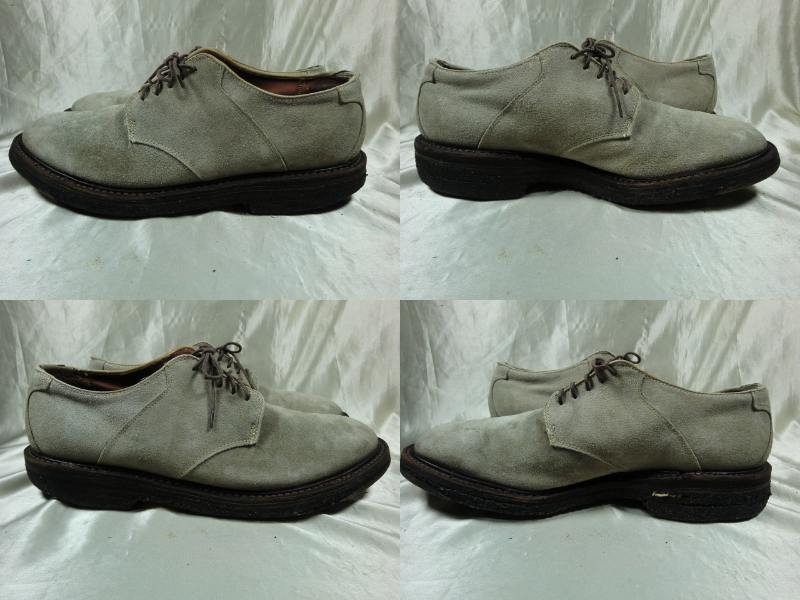| Alden×BEAMS スウェードプレーントゥ 5593です。 クレープソールにべたつきはありませんが小石やごみが付着しています。 踵の減りと剥がれがあるので早めに交換した方がいいと思います。 使用感はありますがソール交換をすればまだまだご使用頂けます。 試し履き後に「サイズが合わない・(大きい、又は小さい)」などの申し出は受け付けしませんのでサイズをよくご確認下さい。 シューキーパーは撮影用で付属されません。 同梱も可能で2点まででしたら80サイズでの発送が可能です。 3点から100サイズになります。 発送サイズは80サイズになります。 表記サイズ・US7.5 アッパー素材・スウェード(革) アウトソール全長・約 31cm |