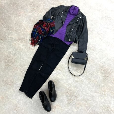 パープルタートルネックニット