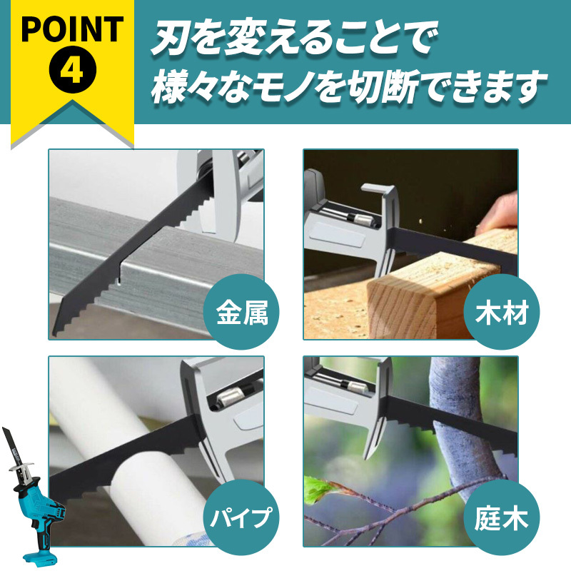 | レシプロソー 充電式 マキタ 18V バッテリー 互換 ブレード 替刃 新品 DIY 電動工具 makita コードレス 本体 金属 塩ビ管 木材 切断 022 |