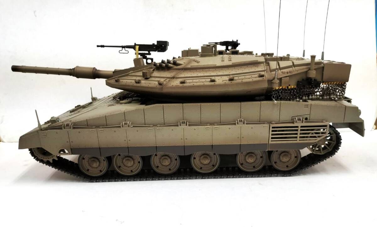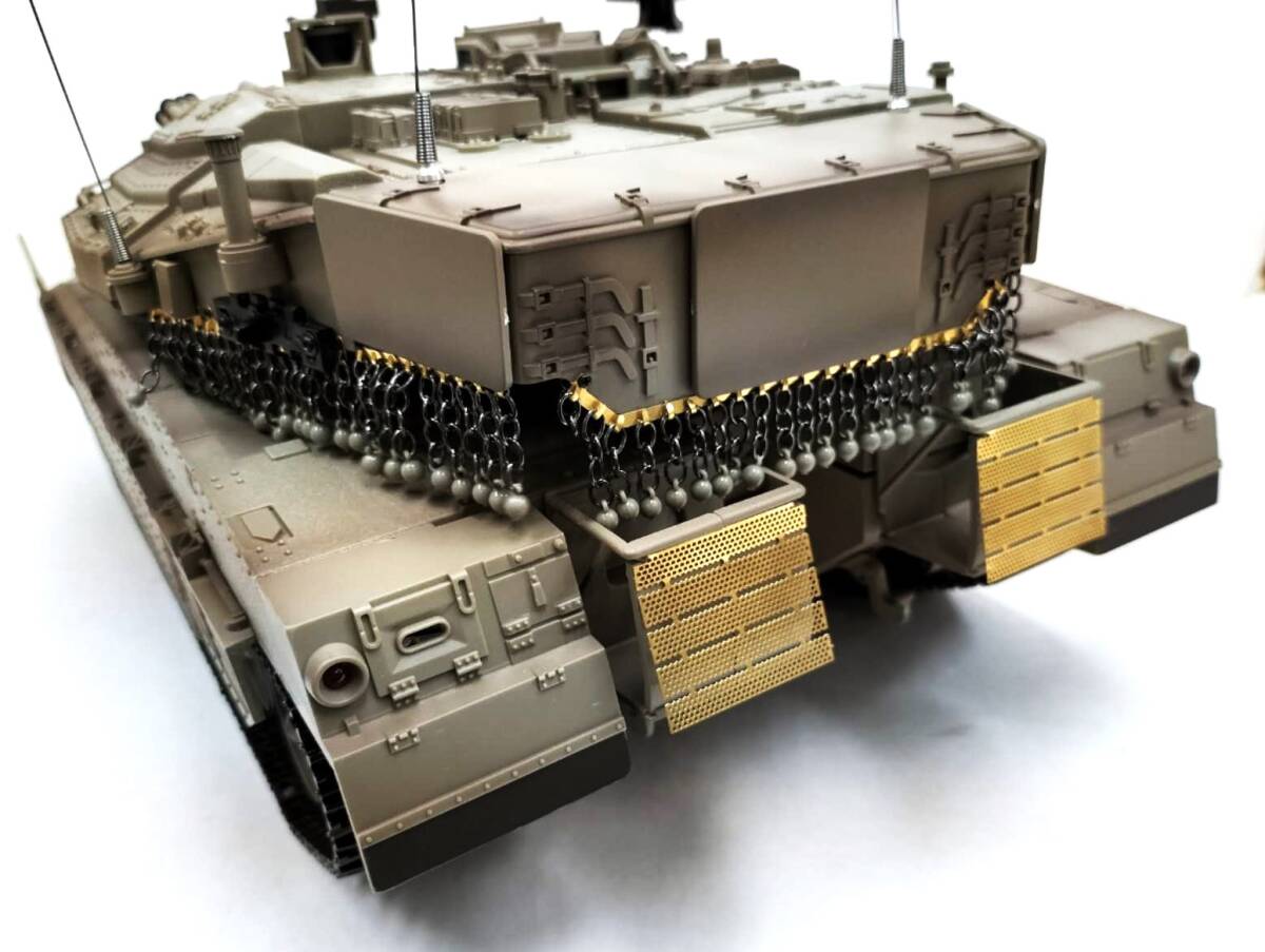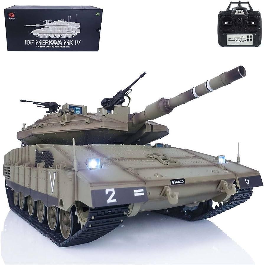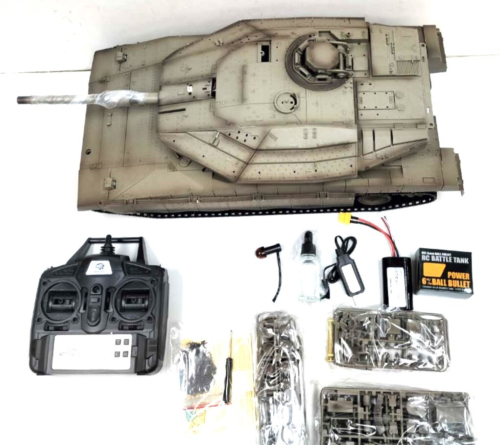 商品サイズ 長さ550ミリx幅235ミリx高さ175ミリ(目視で測定) *3枚目以降はアクセサリー装着前の写真を使っています。 *砲台回転が従来のヘンロン1/16に比べ高速化しています。 1秒ほどで半回転でする超高速回転。 *砲身リコイルします。 *周波数は2.4G *電池は7.4Vリチウムイオンバッテリー 端子は新型です。 *基盤は最新のTK7.0仕様。 *リアルなエンジン音 *低速・高速切り替え等プロポのボタン操作で多彩な機能。 *BB弾発射機能付き *付属の赤外線受信センサーで赤外線対戦が行えます。 *発煙機能付き。 バッテリー充電時間4時間、作動時間約20分 プロポ:2.4ギガヘルツデジタルプロポ (単三電池6本別売) *輸入品につき小傷、擦れ、写真との若干の色違いなどがありましたらご勘弁ください。