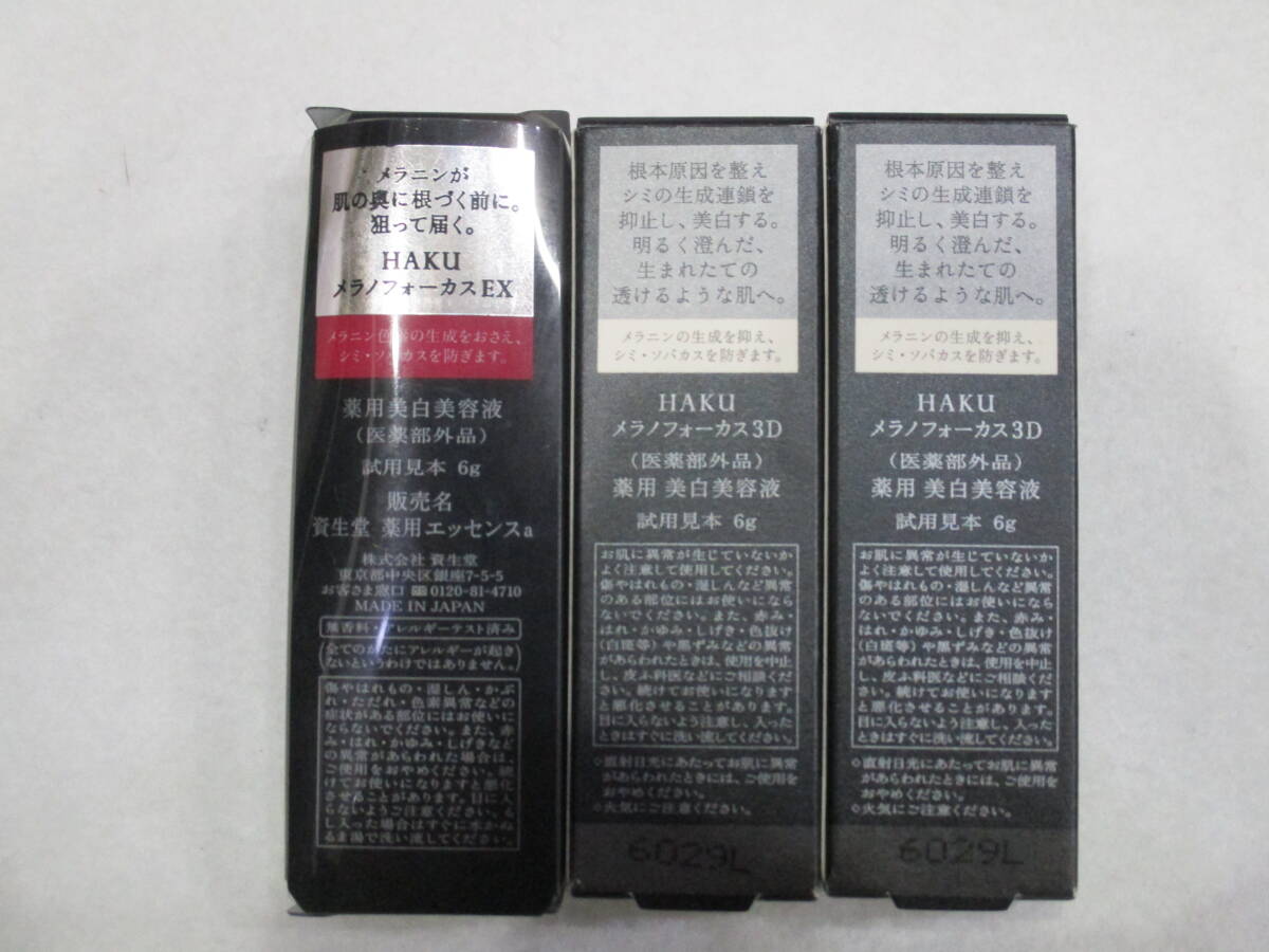 | 資生堂 HAKU ハク メラノフォーカス3D 2本 メラノフォーカス EX 1本 まとめ3点 美白美容液 試用見本 6g 化粧品 コスメ サンプル 未使用品 |