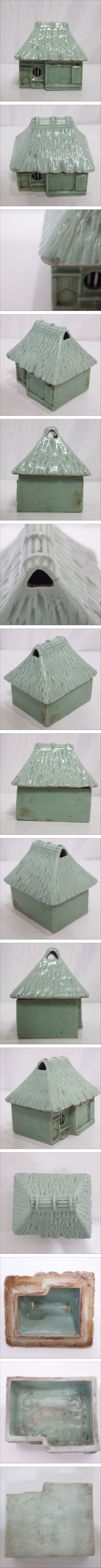 伊万里◆伊万里 青磁 家形 香炉 幅11.5㎝×奥行10.0㎝×高11.0㎝・小キズ有り◆USED | |||