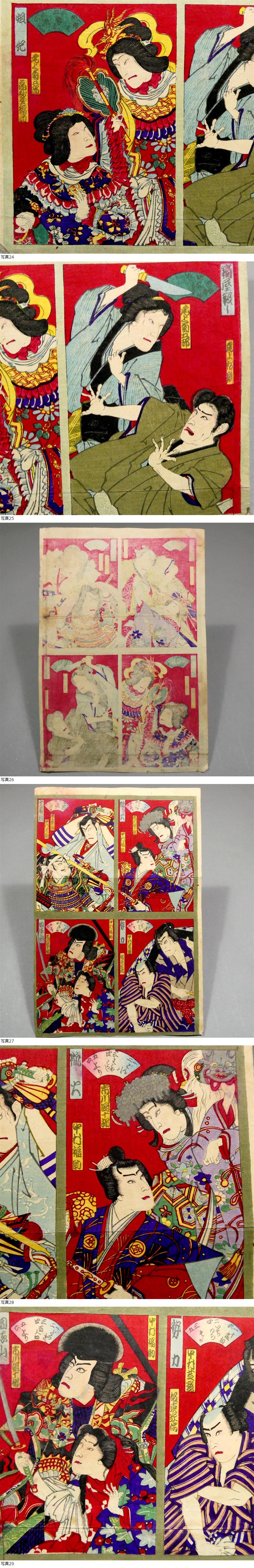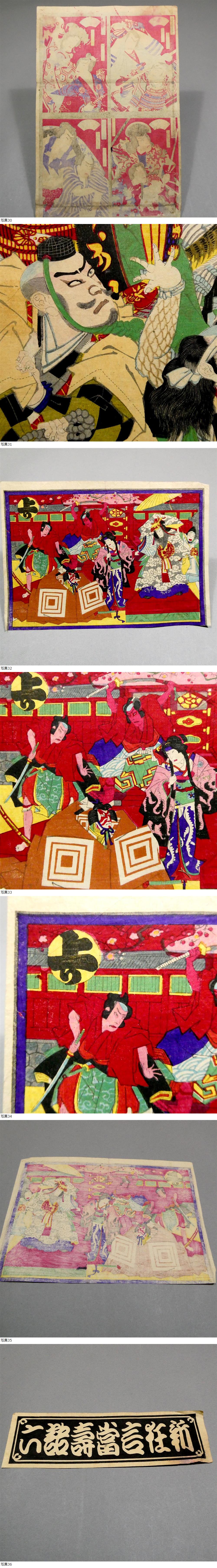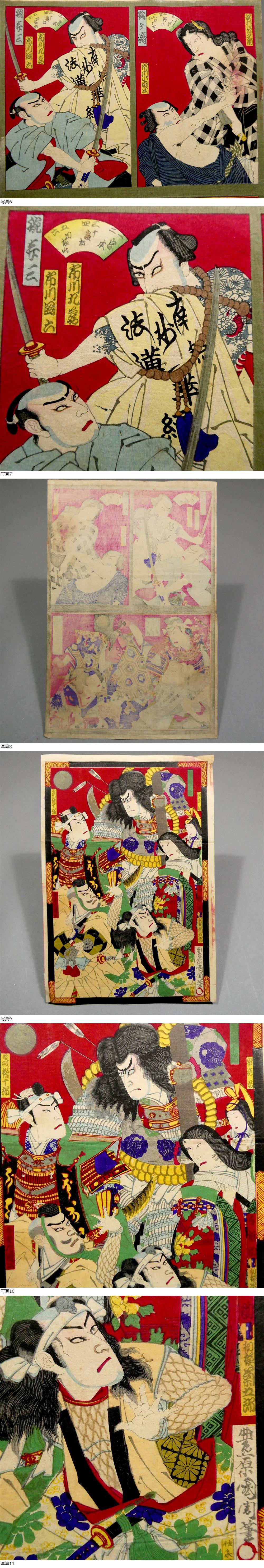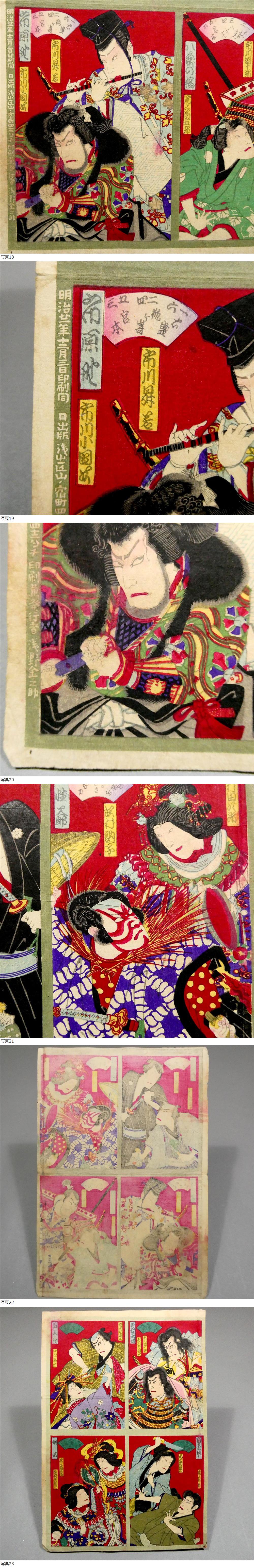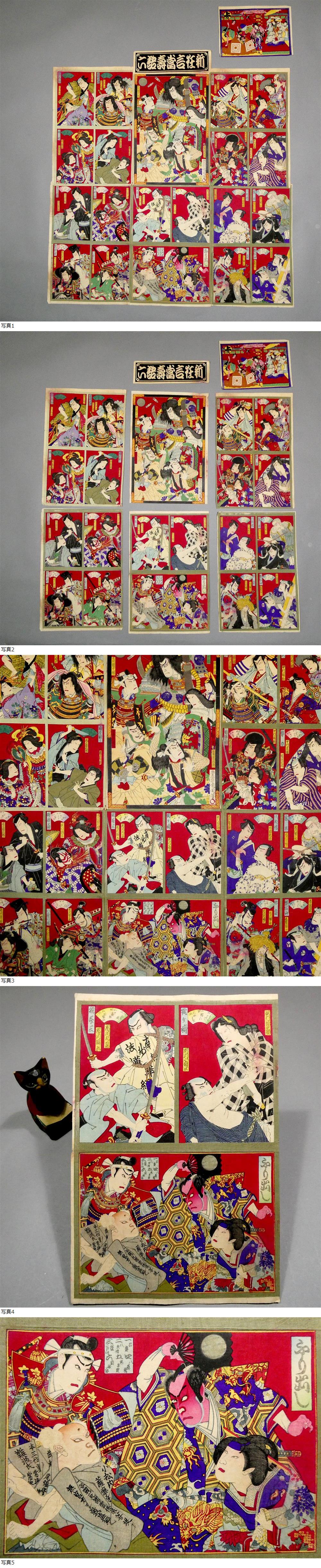 ■ 希少! 8枚続き! 豊原国周 明治時代 木版浮世絵双六 「新狂言当寿語六」 大判錦絵6枚&画題&「上り」 ■