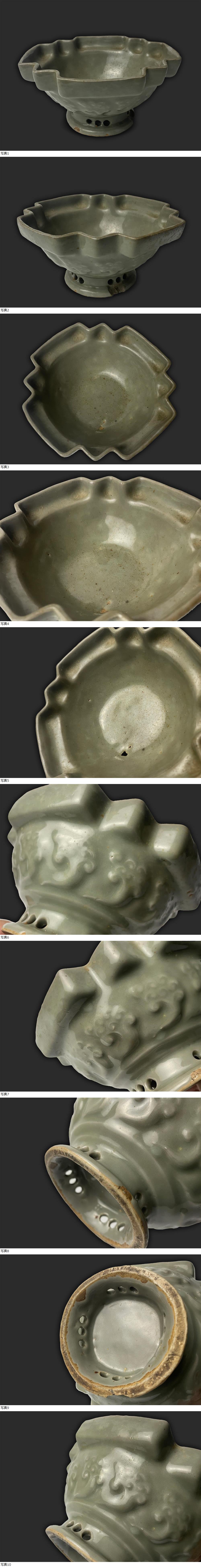| 江戸期 三田青磁盃洗 陽刻 透彫 青瓷 時代 高さ約8.6cm |
