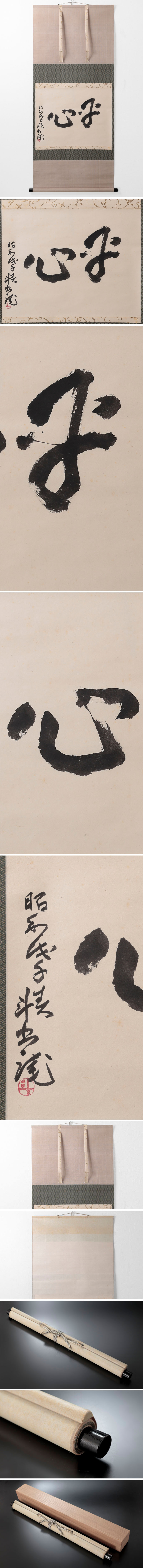 快活で落ち着いた筆使い、突き通った空気感が漂います。 【平心】・・・心が落ち着いて平静な状態。 ★商品は荒川豊蔵の作品である事を保証致します。 ※掛軸の同梱発送について※ 掛軸とお茶碗などの茶道具との同梱は、破損の危険性が非常に高いため、基本的に承っておりません。予めご了承下さいますようお願い申し上げます。掛軸同士やその他形状が近い商品に関しては同梱可能な場合もございますので、その際は当店よりお知らせ致します。 |