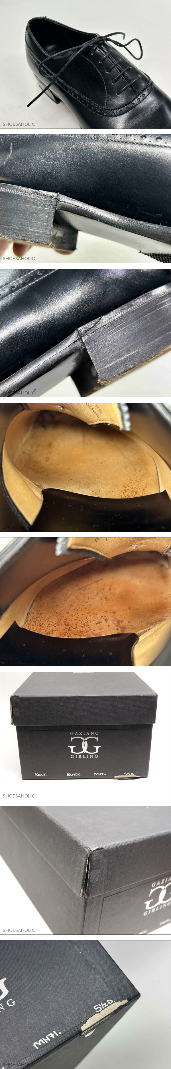 | 商品説明 | ●ご試着について:最下段の<特定商取引法>に記載のある東京都国立市の実店舗にてご試着可能です。 ●出品ID:196 ●管理コード:6540 ●ブランド:ガジアーノ&ガーリング ●商品詳細:KENT #MH71 ●サイズ・ワイズ :5.5D ●右足のソールの実寸: 全長: 27.4cm 最大幅: 9.5cm ●カラー:ブラック ●素材:カーフ ●付属品 ( 〇 )箱 ( )シューツリー ( )その他( ) *上記のシューツリーに( 〇 )の記載の無い商品は撮影用のツリーのため付属しません。 *箱はヨレ、キレ、スレ、シミ等がある物もありますので、おまけとお考え下さい。 ●全体的な状態:C ( A:試着程度 B:使用数回 C:極上 D:美品 E:中古 F:一部訳あり) ●アッパーの状態 ( ) 試着程度品ですが試着シワ・保管スレキズがあります。 ( 〇 ) スレ、キズ、履きシワがあります。 ( 〇 ) 色ムラ、シミがあります。 ●ライニングの状態 ( ) 試着程度品ですが保管スレキズ・保管シミがあります。 ( 〇 )靴の内側に履きシミがあります。 ( 〇 )靴の内側にスレがあります。 ●ソールの状態 ( )試着程度品ですが試着スレキズ・保管シミがあります。 ( 〇 )ハーフラバーが貼ってあります。 ( 〇 )トゥはスティール・ラバー・レザーが付いています。 ( )ソールは交換されています。 ( )ヒールは交換されています。 ●特記事項 ・靴紐は交換されており、けっこう長めです。 ・中底にシミがあります。 ・ソールとウェルトに隙間があります。 ・箱に切れがあります。 ーーーーーーーーーーーー<お知らせ>ーーーーーーーーーーーーー ●お問い合わせについて:質問フォーム またはお電話でお願い致します。 ●実店舗について:店名:シューホリック 所在地:東京都国立市東2-6-6 フジノビル2階 ●営業日について:公式サイト上トップページの「インフォメーション」にてご確認下さい。 ●発送について:定休日・臨時休業日・土日祝日・休暇中 以外の営業日に行います。 ●送料について:ヤマト宅急便 元払い(日時間指定・営業所止め可)の全国一律1000円(北海道、沖縄は+500円) ●入札について:落札後24時間以内に必ず連絡の取れる方、落札後3日以内に決済可能な方のみご入札下さい。 ●お値引きについて:承っておりません。 ●返品について:商品の不備や記載ミス以外、気に入らなかった、サイズが合わなかったなどお客様都合での返品は受け付けていません。 ●評価について:評価は基本的に当ストアよりは差し上げておりません、ご希望の場合お知らせ下さい。 ●同時販売について:実店舗や公式サイトでも併売をしているため、以外で完売後に上で掲載の取り下げが間に合わない場合があり、ご落札後のキャンセルをさせて頂く場合があります。 ●特定商取引法に関する表記● ・販売業者 株式会社 シューホリック ・事業内容 高級靴・高級鞄を専門に販売、輸入および買取業務。 ・運営統括責任者 井上 祐太 ・古物営業許可証 株式会社 シューホリック 東京公安委員会 308891606450 ・郵便番号 〒186-0002 ・住所 東京都国立市東2-6-6 フジノビル2階 ・電話番号:042-508-3596 会社携帯電話:070-4100-5694 ・お支払い方法 かんたん決済 ・お支払い期日 ご落札後 3日以内 .26 |