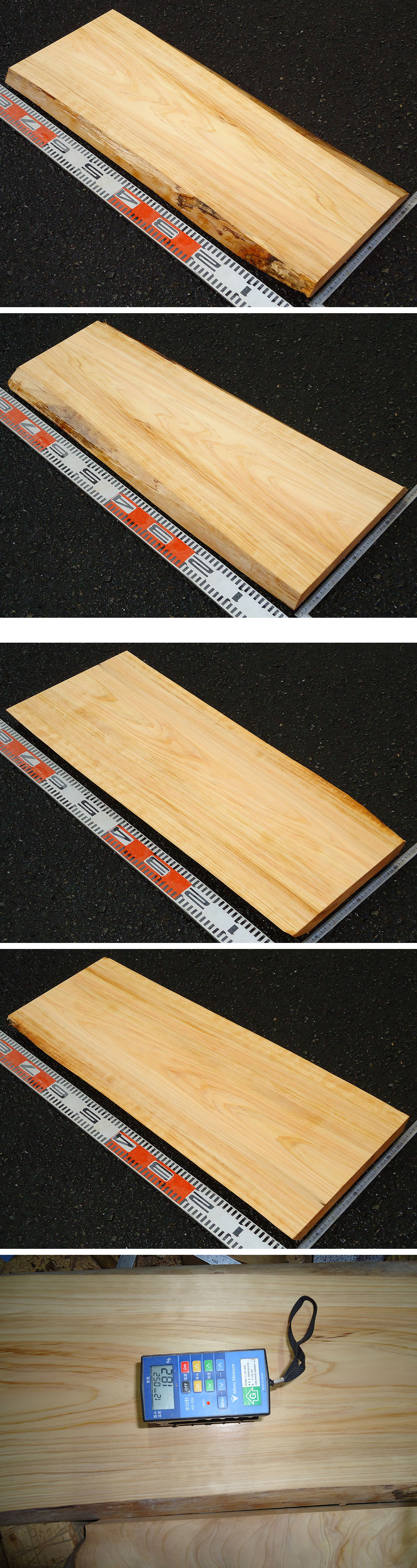 ・平面加工後、両面自動カンナ仕上げしてあり、取り扱い易く状態も見易くなっております。逆目がある場合もあります。