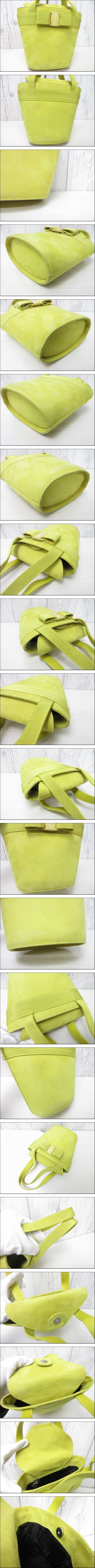 | 美品 Ferragamo フェラガモ ヴァラリボン ハンドバッグ バッグ スエード×ナイロンキャンバス 黄色 96409 | ||