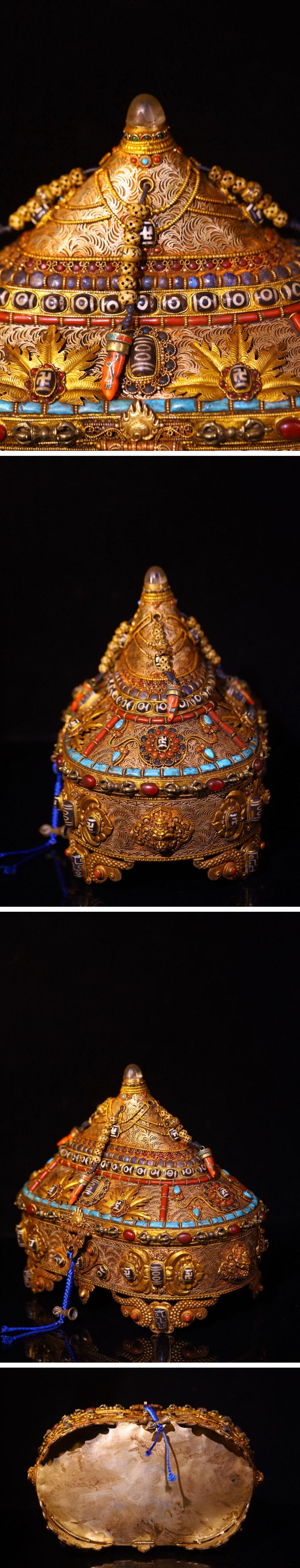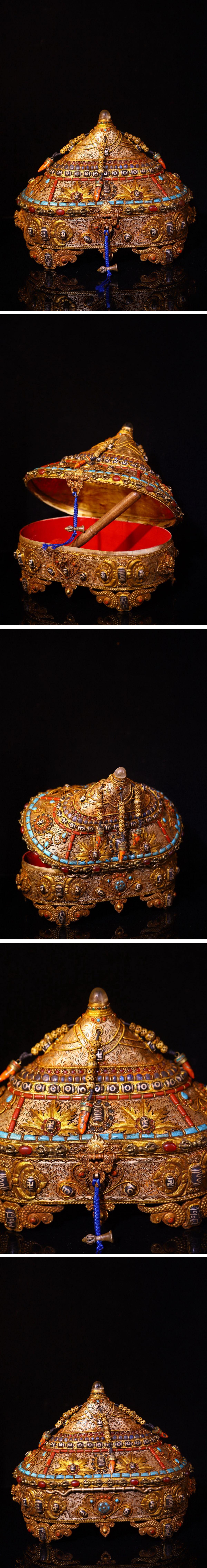 【清】関西某オークション購入 中国伝来 清時代物 藏銀象嵌天珠 蓋物 密教法器 当時物 時代コレクション8L1-ZQ2