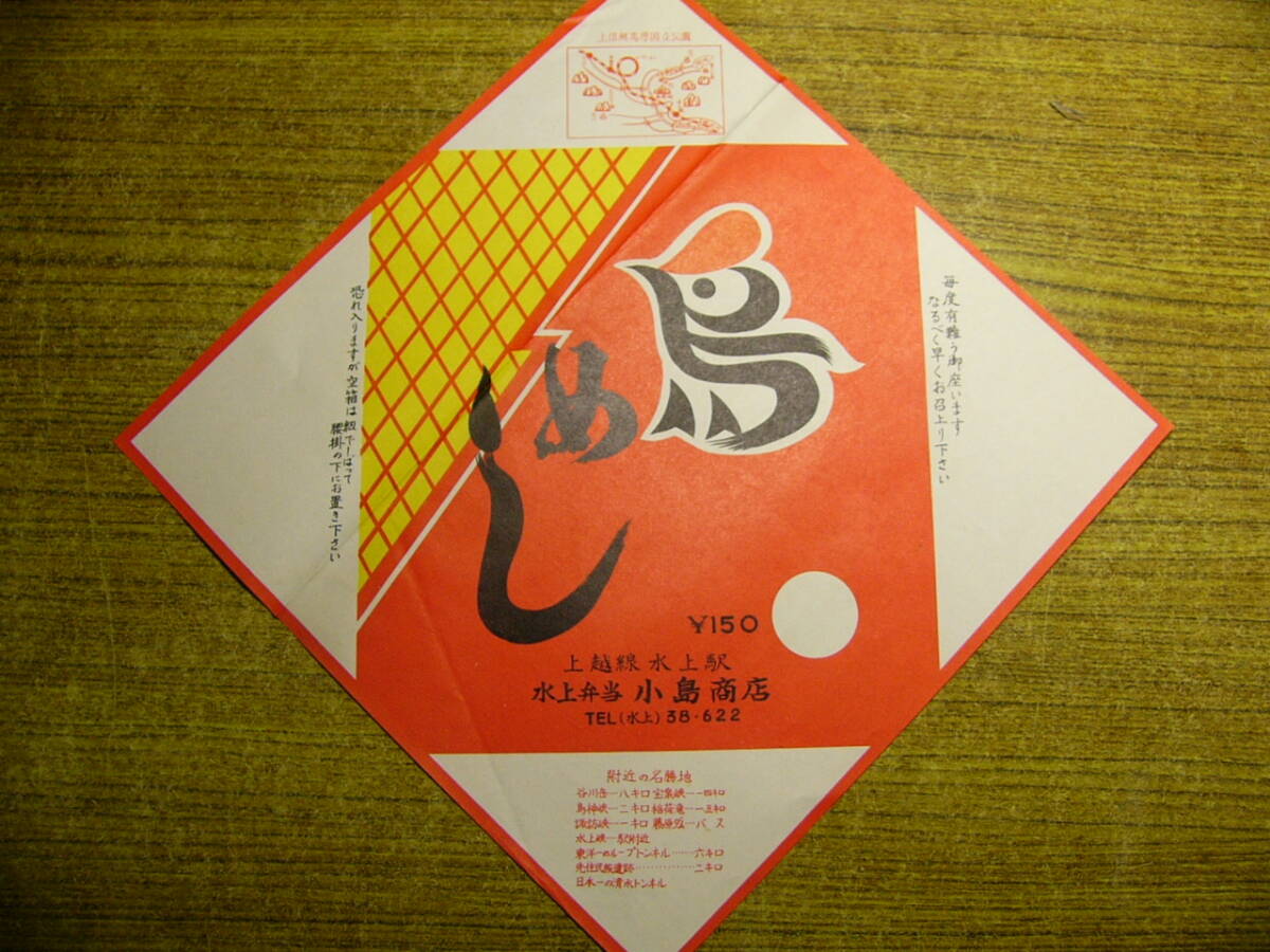 駅弁 掛紙 水上駅 鳥めし 群馬県利根郡みなかみ町 当時150円 小島商店| 出价者 | 信用 | 价格 | 时间 |
