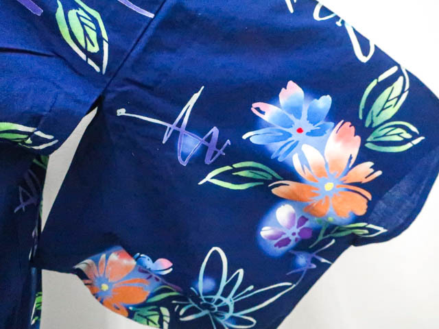 | リサイクル商品のため、たたみジワや、後身頃、両袖に薄汚れ、左袖付きにほつれかけの部分がございますが着用可能なお品です。 地色は、紺色です。 1枚目の画像が近いお色かと思われます。 素材は綿です。 |