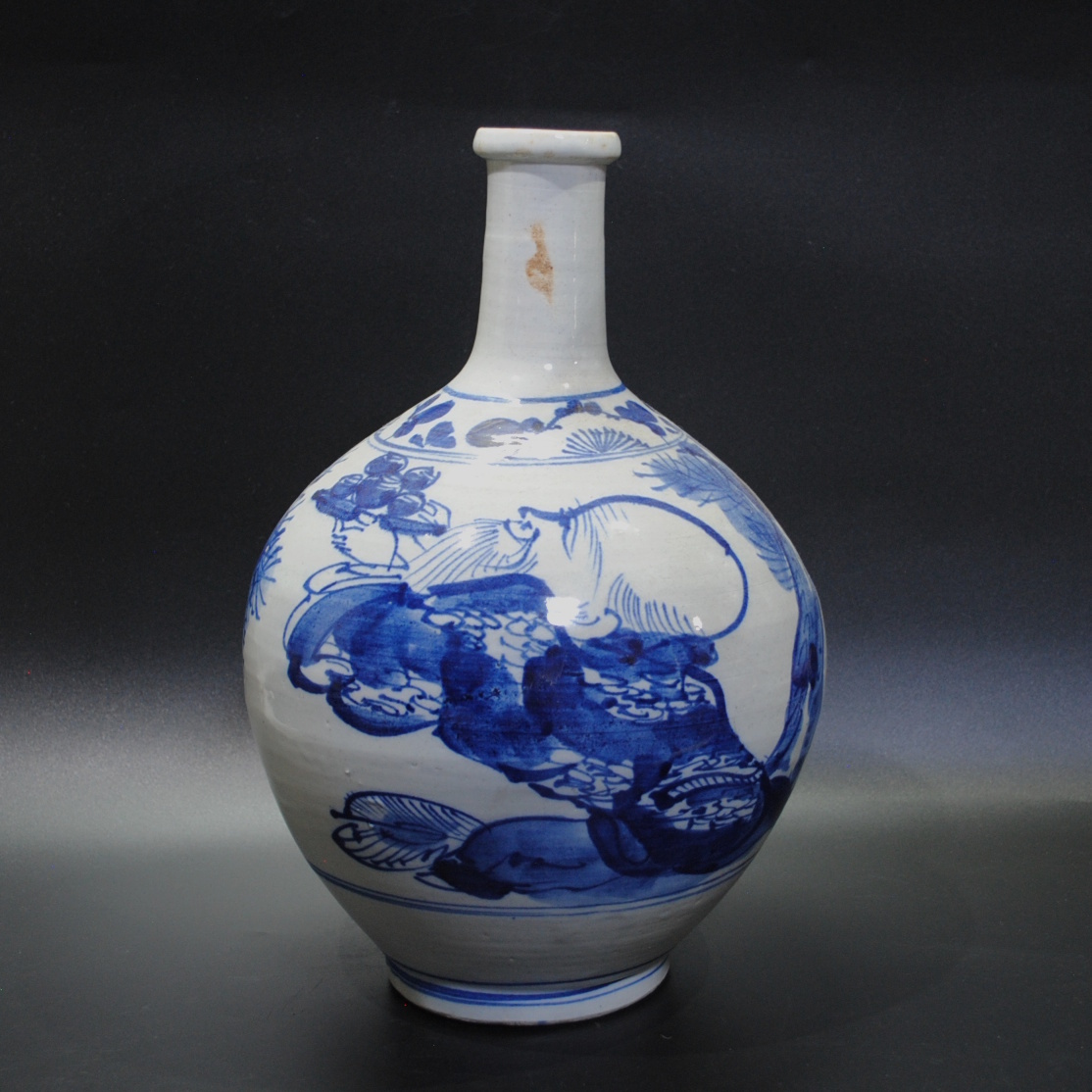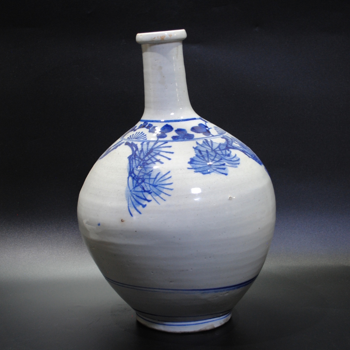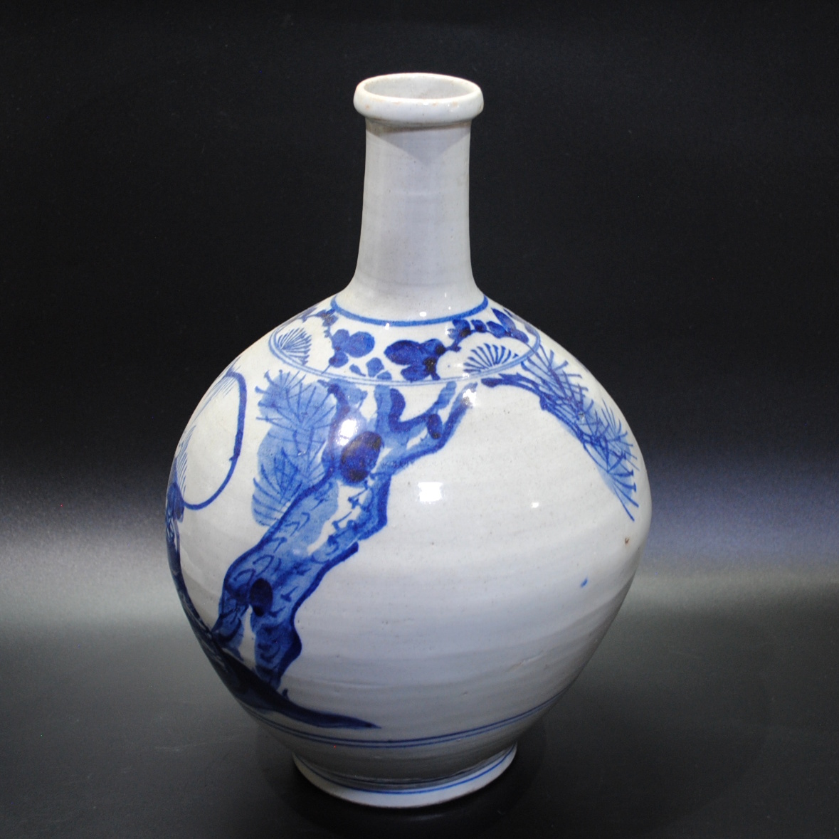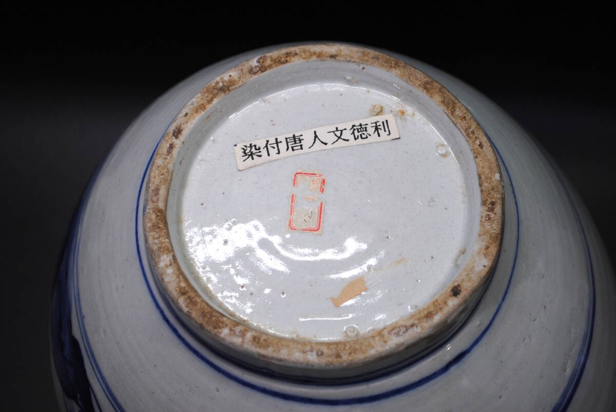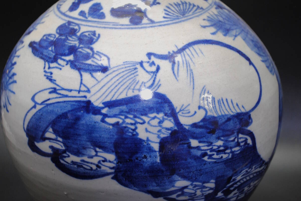 【売切り屋】古伊万里染付唐人文徳利 大型 高さ約36cm 江戸時代後期~明治 松賢人寿老人 酒器 花瓶 旧家蔵出