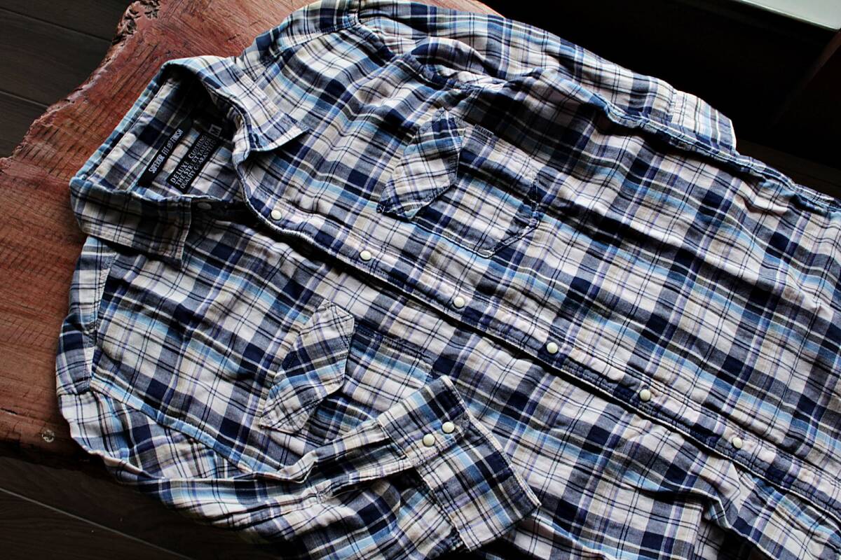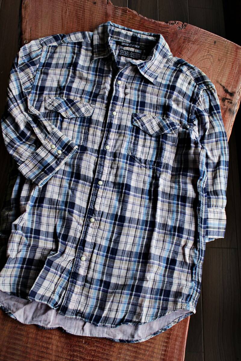 | [商品名] | チェック七分袖ウエスタンシャツMサイズ ネイビー★45RPM★レミレリーフ★RRL★made in JAPAN |