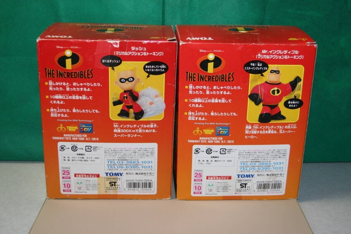 TOMY製品。 The INCREDIBLES マジカルアクション&トーキング 「Mr.インクレディブル」と「ダッシュ」の2個をセットで。 但し、Mr.インクレディブルは動作しません。 ダッシュは喋ったり光ったり、走ったりします。 [箱のサイズ]約19.5cm(高さ)×15.4cm(幅)×11cm(奥行き) 中古品。 Mr.インクレディブルは動作しません。フィギュア自体は綺麗です。飾り物としてご利用下さい。ジャンク扱いでお願いいたします。 ダッシュは動作致しました。 単4電池2本必要です。 箱は汚れ、擦れ、潰れあります。状態悪いです。 NC・NRでお願いいたします。 ★下記、注意メッセージを必ずご確認下さい。よろしくお願いいたします。 ↓ ↓ ↓ ↓ ↓ ↓ ↓ ↓ ↓ ↓ ↓ ↓ ↓ ↓ ↓ ↓ ↓ ↓ ↓ ↓ ↓ ↓ 落札後、48時間以内にご連絡頂けない場合は落札者都合にて削除いたします。 新規の方は入札前に質問欄より「入札する意思がある旨」ご連絡をお願いいたします。 頂けない場合は入札を取り消しいたします。(入札後、取引を全く進める事が出来ない方が頻繁におります。) 取引メッセージをお読みにならない方、マイナス評価(評価0以下)の方は入札をご遠慮ください。マイナス評価の場合は入札を取り消しいたします。 送料について、ご不安な方は必ず、質問欄にて入札前にご連絡をお願いいたします。 お支払いはかんたん決済のみです。必ず、期限内でのお支払いをお願いいたします。 よろしくお願いいたします。 ↑ ↑ ↑ ↑ ↑ ↑ ↑ ↑ ↑ ↑ ↑ ↑ ↑ ↑ ↑ ↑ ↑ ↑ ↑ ↑ ↑ ↑
