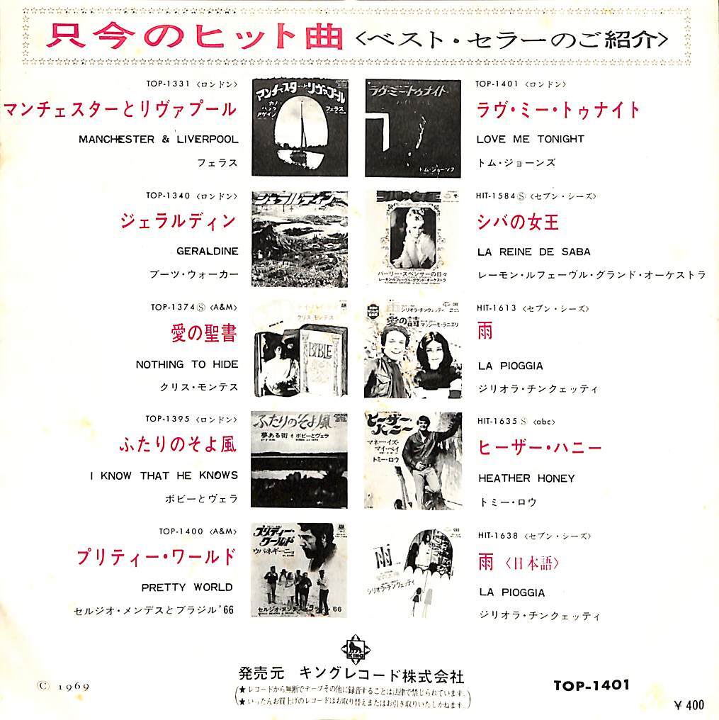 タイトルラヴ・ミー・トゥナイト/ハイド・アンド・シーク(1969年:TOP-1401)