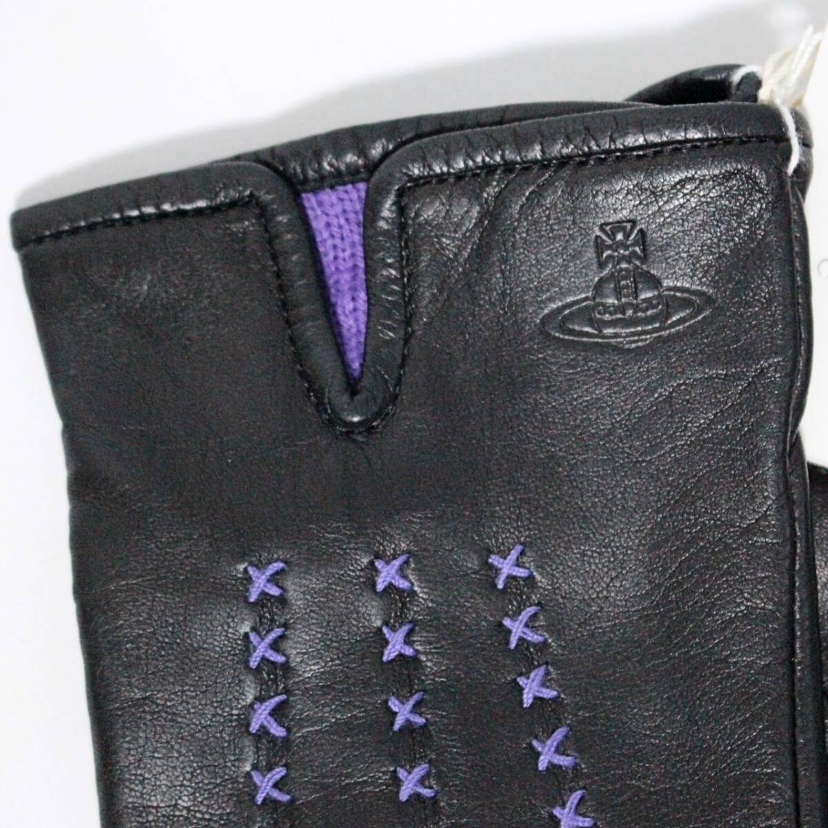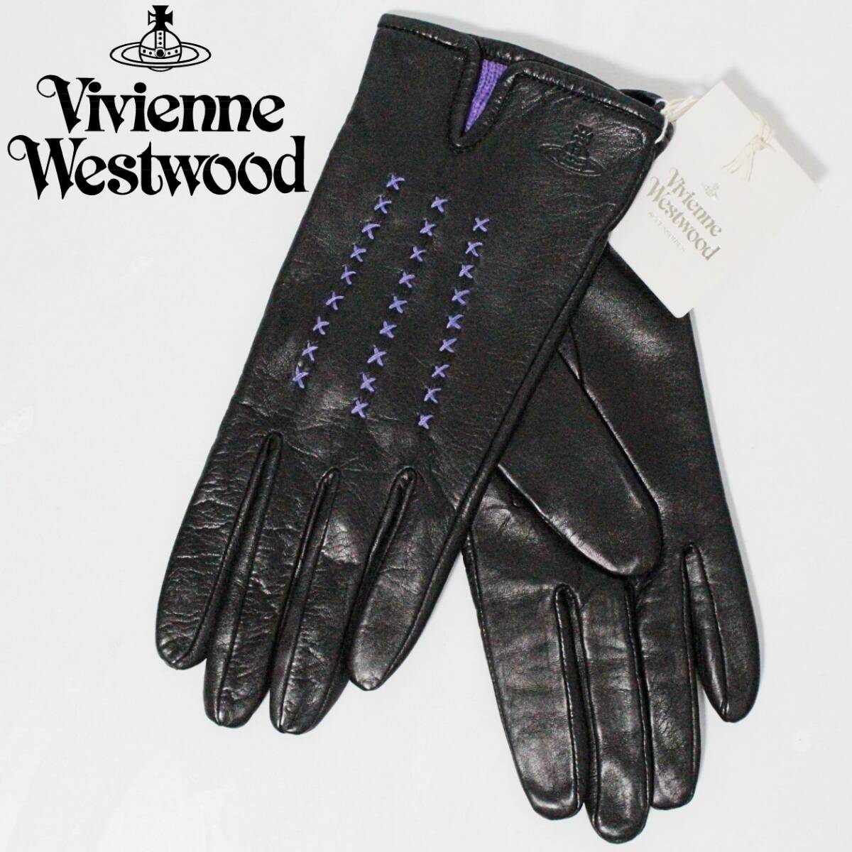 | 未使用 ヴィヴィアンウエストウッド クロスステッチ ラムレザー ニット手袋 20cm 黒 K5795 |