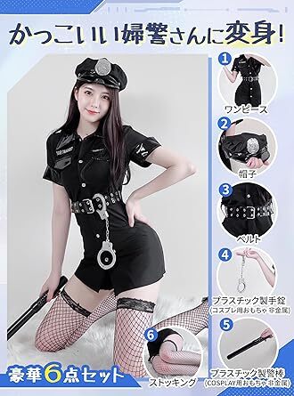 | GOKEI ポリス制服6点セット コスプレ レディース M 衣装 婦人警官 ミニスカポリス セクシー ハロウィン イベント 仮装 パーティ 撮影 | |