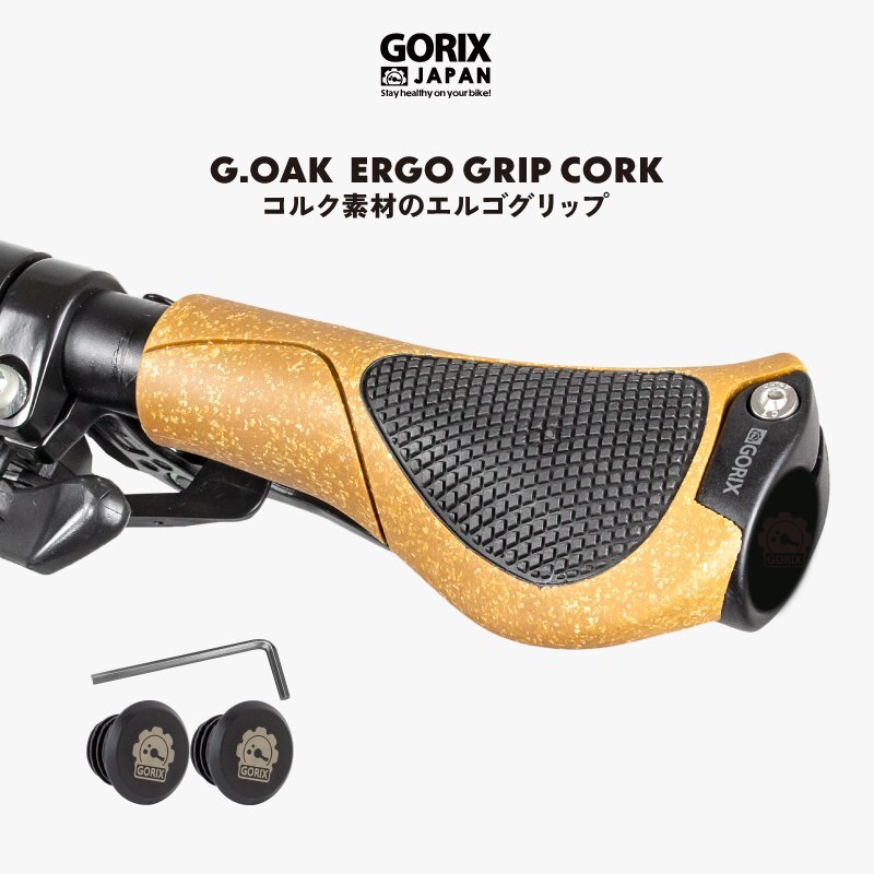 自然を感じるコルク素材を使用した自転車グリップ。 カスタマイズ性も高いコルク素材はナチュラルな印象に。 人間工学に基づいたデザインで握りやすく疲れにくいエルゴ形状。 手首の疲れや、腱鞘炎で悩んでいる方におすすめです。 装着はロックオン固定を採用で角度調整やグリップ交換が容易に。 クロスバイクやマウンテンバイク・ミニベロ・電動自転車など標準的なフラットハンドルの自転車に最適。 [自然を感じるコルク素材] コルク素材の特徴として弾力性があり質感や感触がよい。 ナチュラルな見た目は装着するだけでどことなくクラシカルで垢抜けた印象に。 [ゴムパム] 掌に接する箇所には柔らかく衝撃吸収に優れたゴムパムを採用し、路面からのショックを吸収し、振動による体へのダメージを軽減。 表面は凸凹にして滑り止め加工しグリップ力を高めます。 [手の疲れを軽減するエルゴ形状] 負担を軽減するように人間工学に基づいたデザインで長時間のハンドルを握り続ける手の疲れを最小限に抑え快適に。 エルゴグリップは手のひらをベタっと置く事で、自然な角度でハンドルを握れ、体の重さを手の平に分散し、痛みと疲れは大幅低減。 それにより手首をしっかりとサポートし、腱鞘炎や手首の負担対策に有効です。 [扱いやすいロックオン固定] グリップのロックリングのネジによってハンドルバーに固定するロックオン。 外側に付いているネジを締めることでハンドルに固定するので角度調整も容易に行えます。 まだグリップの抜き差しも簡単に行えてグリップの交換作業が効率的にもなります。 商品内容グリップ、エンドキャップ、六角工具 サイズ長さ128mm、パム幅最大66mm、 内径φ2.22cm 素材コルク、PP樹脂、ゴムパム、アルミ合金リング 重量約208g/ペア 形状エルゴ 対応するハンドルバーの直径20-22.2mm ほとんどの自転車に適用標準的なストレート22mmのハンドルバーに適合 |