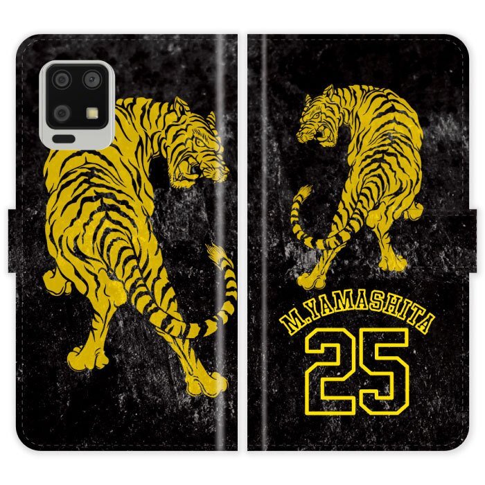AQUOS zero6 SHG04 A102SH 対応、虎のグランジデザインに背番号の名入れができる手帳型ケース