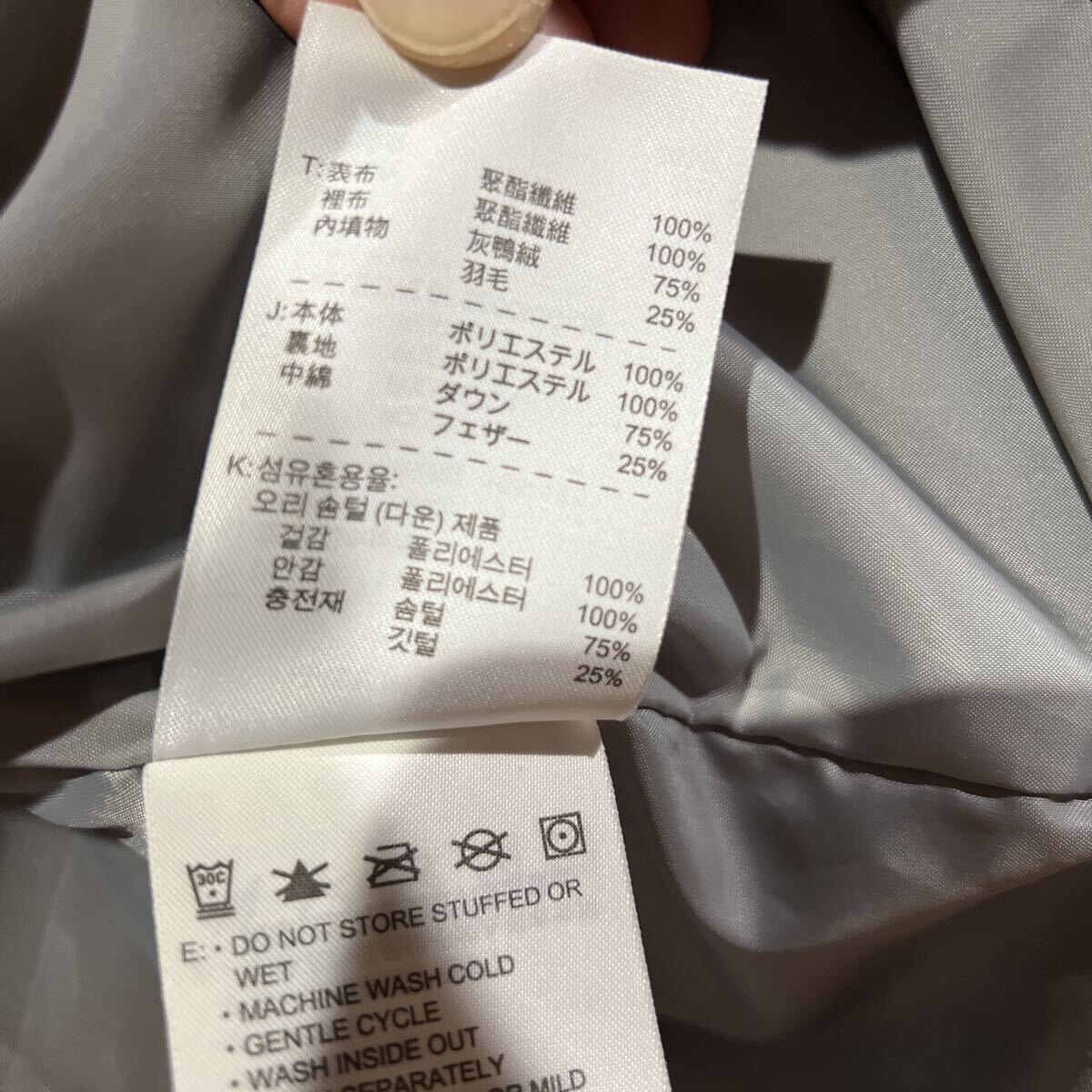 - 中綿:グレーダックダウン75%、フェザー25%
