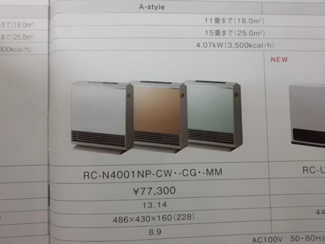 リンナイ製 プラズマクラスターイオン放出機能付き ガスファンヒーター A-style 新品未使用品です。