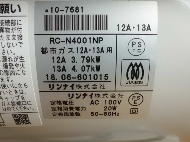リンナイ型番 : RC-N4001NP 大阪ガスOEM品番 : N140-5873