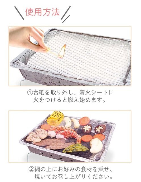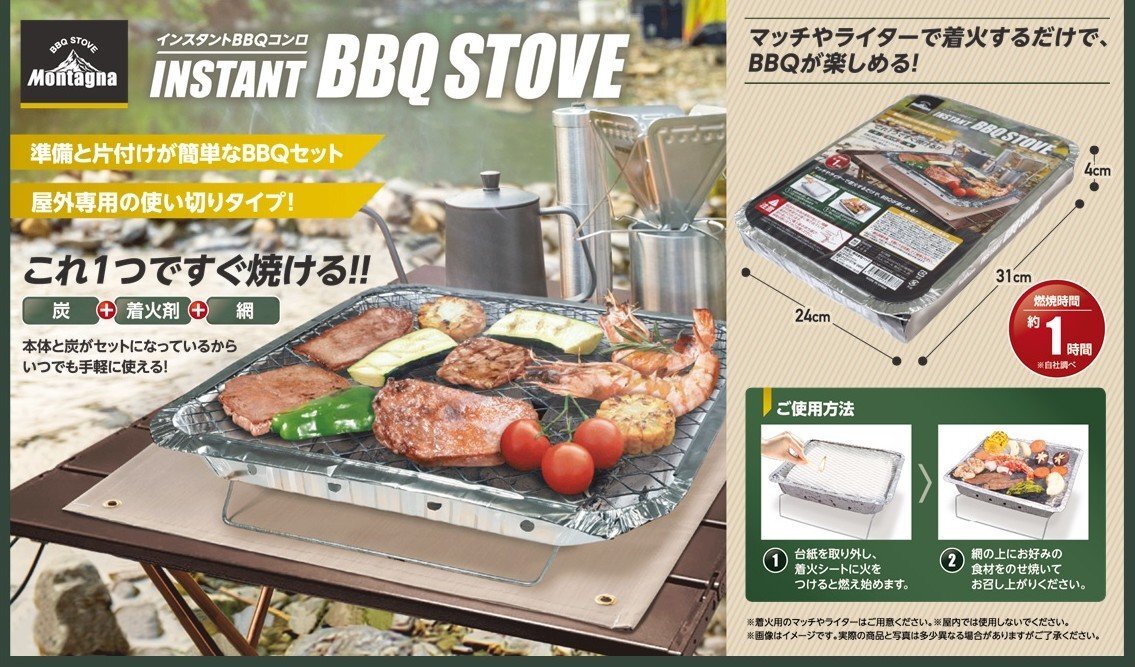 BBQに必要な炭・着火剤・網がセットなので、用意と片付けの手間がありません。 |