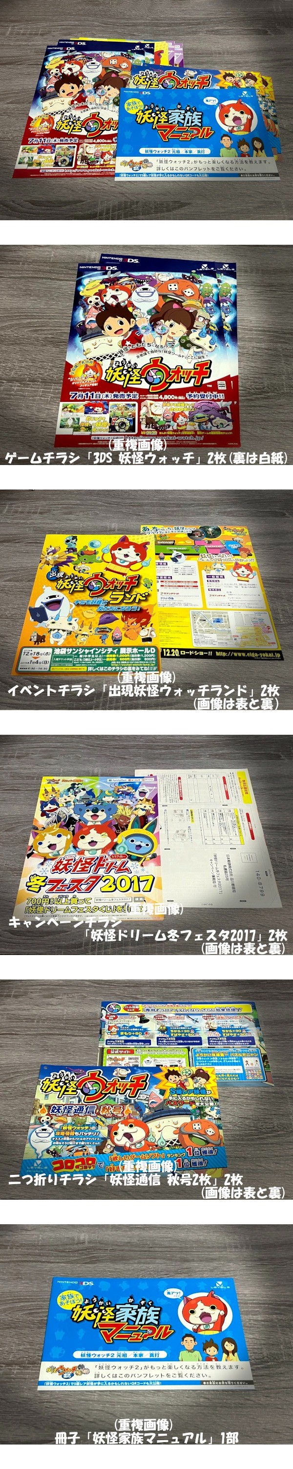 | ------------------------------------------------------------------------ ж ж ж 商品について ж ж ж ------------------------------------------------------------------------ ◆ 「 妖怪ウォッチ 3DS、キャンペーン、イベント などの 配布印刷物 」 スレ、シワ、折れ、などが ある場合があります。 いずれも 入手より経年しており、記載以外にも 初期、経年 による劣化、及び 保管時、取り扱い時などのダメージ必至です。 ※ 商品は この説明の下の画像1枚目のもので全てです。 ※ 自身が 当時 新品で入手した ワンオーナー品です。 ※ 画像は 実物よりきれいに写ってしまう部分があります。 また、最初の検品・出品から 時間が経っているものは、掲載画像・説明にはない 劣化 及び ダメージの増加 など 必至です。商品状態は現物優先です。 ※ ペットなし、非喫煙環境です。 |