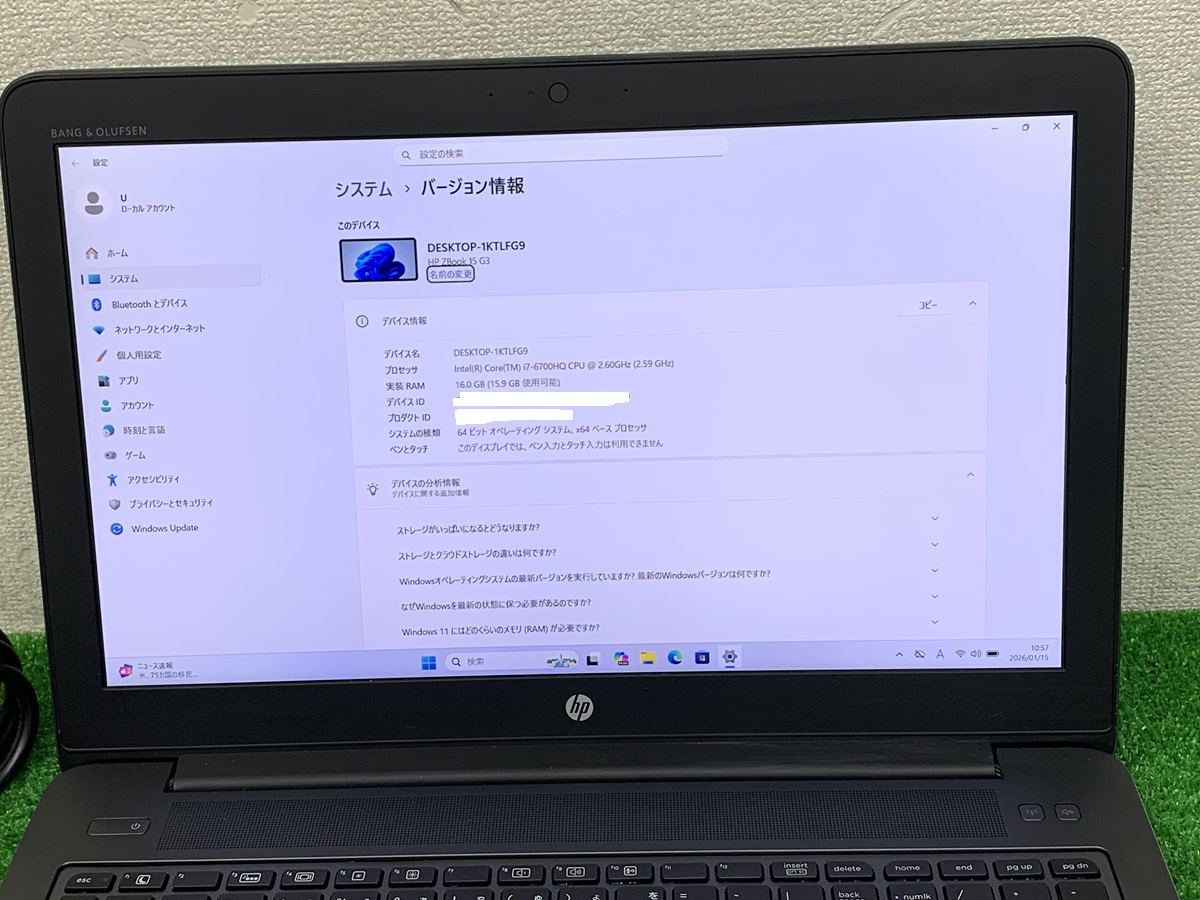 hp zbook 15 g3 mobile workstation ノートPC intel core i7-6700HQ ノートパソコン中古 メモリ16GB SSD256GB 15.6 フルHD LAPTOP nvidia quadro M1000M