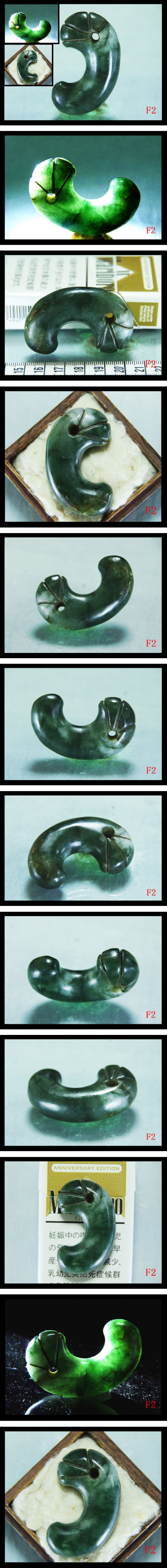 ★★★★★★★★★★★★★★★★★★★★★★★★★★★★★ 勾玉とは:日本で古来より“三種の神器”の一つとして伝わる、 超強いパワーを持つ勾玉神器。 その形は、一説には陰と陽(=月と太陽)を具現化したものであると言われ、また一説では胎児の形を模したものとも言われます。 勾玉の歴史は古く、古代より社会的な地位が高い、お金持ちの人達装身具として使用されてきました。疫病退散,災難やあらゆる悪霊を払う魔除けのお守りとして、呪術に用いられた。 現在勾玉は社会的な地位が上がる、金運アップ、昇進や出世を狙う人、胎児の形に似ていることから安産,疫病退散,等のお守り神器として大変人気です。 ★★★★★★★★★★★★★★★★★★★★★★★★★★★★★ ★★当方商品は※コレクターなどの委託品を代行出品、骨董市場から買取品など様々な形態により出品しております★★ 時代・作家名・状態・材質や出土地の根拠等は出品依頼者や骨董市場から買取品前所有者の情報に基づき,確定するものではありません。 商品時代や材質や出土地の根拠、商品真贋等につきましては、保証致しせん、 鑑定機関で鑑定を受けたわけではございませんので、商品説明記載している時代や材質や出土地の根拠等判断相違がある場合がございます。 全ての商品は画像の物で★アンティーク、時代古玩、中古美術品として出品しています。 真贋に関わらずノークレーム・ノーリターンでございます お客様画像をご覧になって、責任を持って、商品説明とお写真で判断できる方のみ入札をお待ちしております。 当店では、商品の状態や商品説明はあくまで当方主観となり、 お客様は自己画像判断の上、入札者の見識により自己責任のもとご自身の無理のない納得できる程度でご入札ください。 ご理解の上、ご協力の程ノークレーム・ノーリターンでお願い致します。 トラブルを防ぎ、新規ID、及び入札者の過去の評価や質問内容を判断して「入札の拒否、取り消し」場合がございます、ご了承ください。 新規IDの方ご購入意思があれば、質問欄に住所・氏名・連絡先を入札前にて事前に連絡下さい。 返品返金条件について 当サイトは、皆様に楽しみいただくためご用意しており ★トラブルを防ぎ ★返品返金は、原則、受付はいたしませんが、 落札者諸事情で、どうしても、キャンセルされる場合は、 落札金額の2割を頂戴した上。 往復送料、振り込み手数料お客様ご負担を頂ければ、商品発送日から十日間以内に返品返金対応致します。 尚、クレームは一切お受け出来ませんので、返品返金条件に納得出来ない、神経質な方のご入札はご遠慮ください ★★返送商品必ず届いた状態で返送してください、 ★★尚商品すでに使用された場合、お客様の手元で水洗い・蝋やワックス付き・加工・破損等、商品ご返送時の状態がお届け時の状態と異なっていた場合(箱、付属品も含む) いかなる理由においても.返品返金ができません。ご注意下さい★★ ★到着後の商品には当方の不備がございましたら、 必ず取引きナビで、一度ご連絡ください、当方誠意を持って対応致します 諸事情により★電話でのお問い合わせ等は一切受け付けておりません。★ご理解の上、ご協力の程宜しくお願い致します。 尚、問題が解決する前に、無責任な悪い評価付いたら、全ての問題が対応致しません、 ★ご注意下さい 同じお品物は二度と出回らない限定の出品で御座いますのでお見逃し無く 他でも販売していますので、予告なく出品を取り消す場合がございます。 出品依頼者希望価格達してない際は、 オークションの取消しをする場合がございます。 あらかじめご理解ください。 注意事項 当方商品は中古、アンティーク、時代 骨董品、美術品として取り扱っております。 【新品出品するの場合明記致します】 経年に伴う擦れ、汚れがあるかと思います,細かい傷や欠け、へこみ等がある場合がございます 未使用のお品に関しましても、あくまで一度人の手に渡った品ですので 完璧なものをお望みの方は入札をお控え下さい。 出来る限り同じ発色に近づけるよう撮影しておりますが撮影環境、フラッシュを使用している場合があります、 ディスプレイ等の関係で、実物の色と多少異なる場合がございますので、ご了承下さいませ 商品画像は撮影後に画像の編集は一切行っておりません。 ※商品は画像の物が全てです。 お客様ご使用のブラウザやパソコンのモニター環境などによっては、多少色合いなどが実物の色と異なって見える場合がございます。 天然石は光の強弱や撮影の角度により、色変化する特性があり,画像色の淡濃が実物の色と多少異なる場合もざいますので、予めご了承いただけますようお願い申し上げます。 ※お品の状態についての説明書きはあくまで主観となります。 トラブルを防ぎ、写真、商品説明をよく読みになり あくまで中古品と言う事をご理解の上、ご協力の程宜しくお願い致します。 トラブルを防ぎ