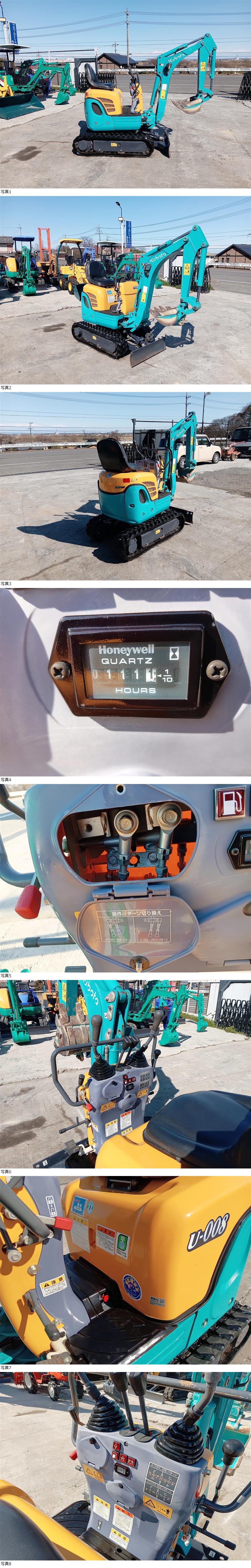 Kubota クボタ★U-008★ミニ油圧ショベル★稼働111時間★マルチ付き★車庫内保管のため美品★ミニユンボ★ミニバックホー