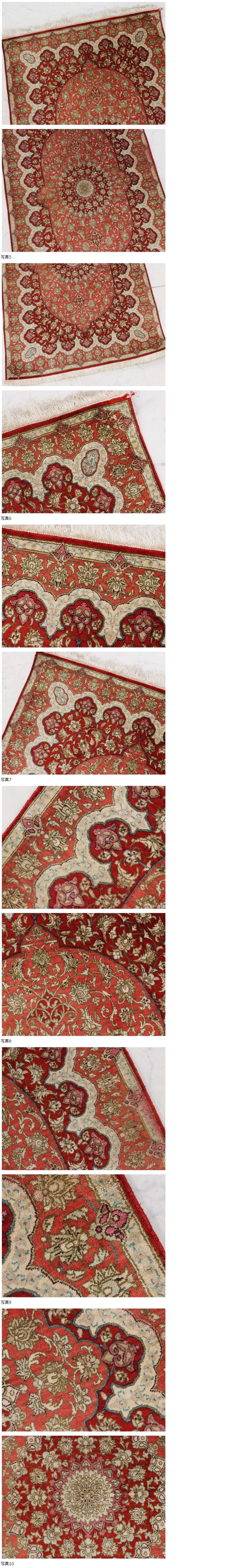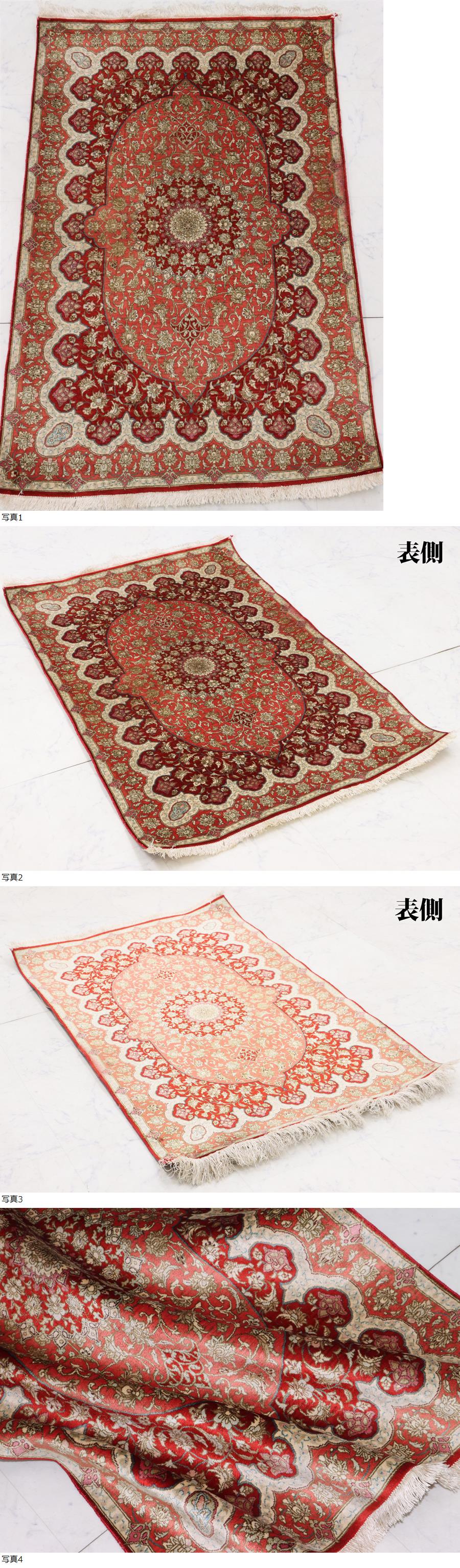 サイズ(約) 77×119㎝(フリンジ含まず)/厚み 3㎜ 付属品 - 最高級ペルシャ絨毯 イラン クム産 シルク100% 手織り100万ノット 77×119㎝ メダリオン絨毯 赤の絨毯美品! 本物保証 イランクム産ペルシャ絨毯でございます。 大変上質なシルクを使用して織られた光沢美しい絨毯です。 シルク100% 手織り100万ノット シックで合わせやすいカラーの伝統的なメダリオン図となっております。 状態ですが、若干の点ジミ、房に薄汚れありますが、特段目立つダメージなく綺麗なお品です。 一度人手に渡ったものがほとんどの為、生活臭や保管臭等、臭いの付着があるものもございます。 臭いに関しては感じ方に個人差があるため、臭いが強いものに関しては説明欄に記載いたします。以上をご理解の上ご入札をお願いいたします。 絨毯に関しましては基本的にキャンセルはお受けできかねます。十分ご検討いただき、ご納得いただいた上でのご入札をお願いいたします。 |