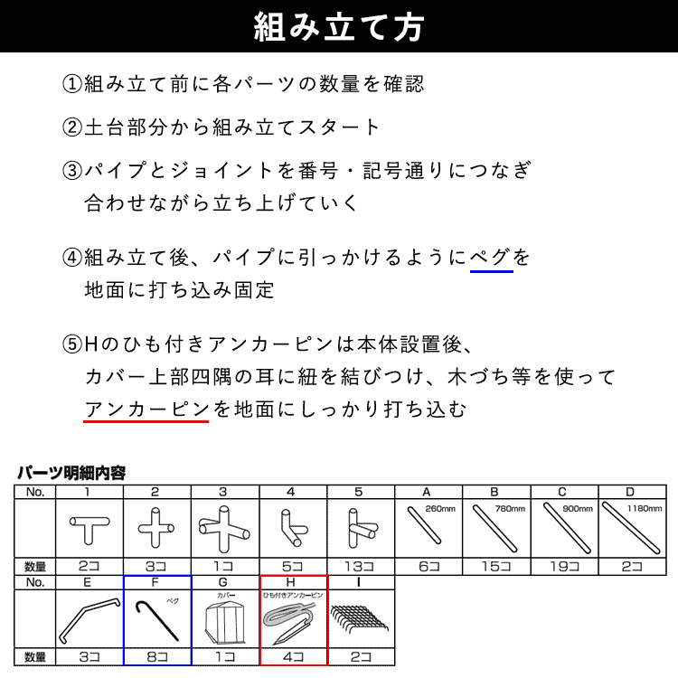 ペグ8本、ひも付きアンカーピン4個