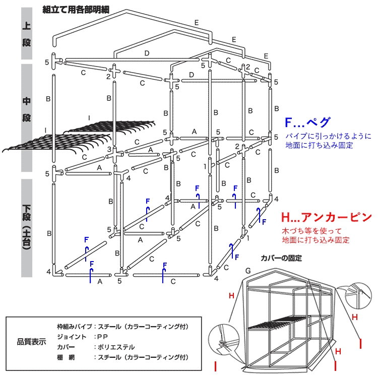 枠組みパイプ、棚板:スチール(カラーコーティング付)