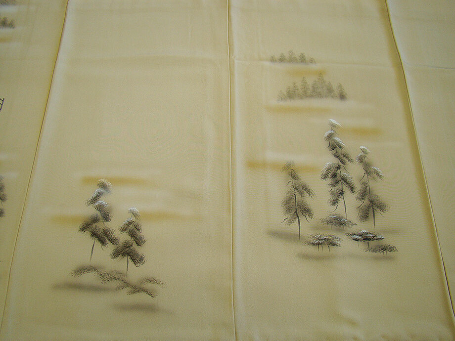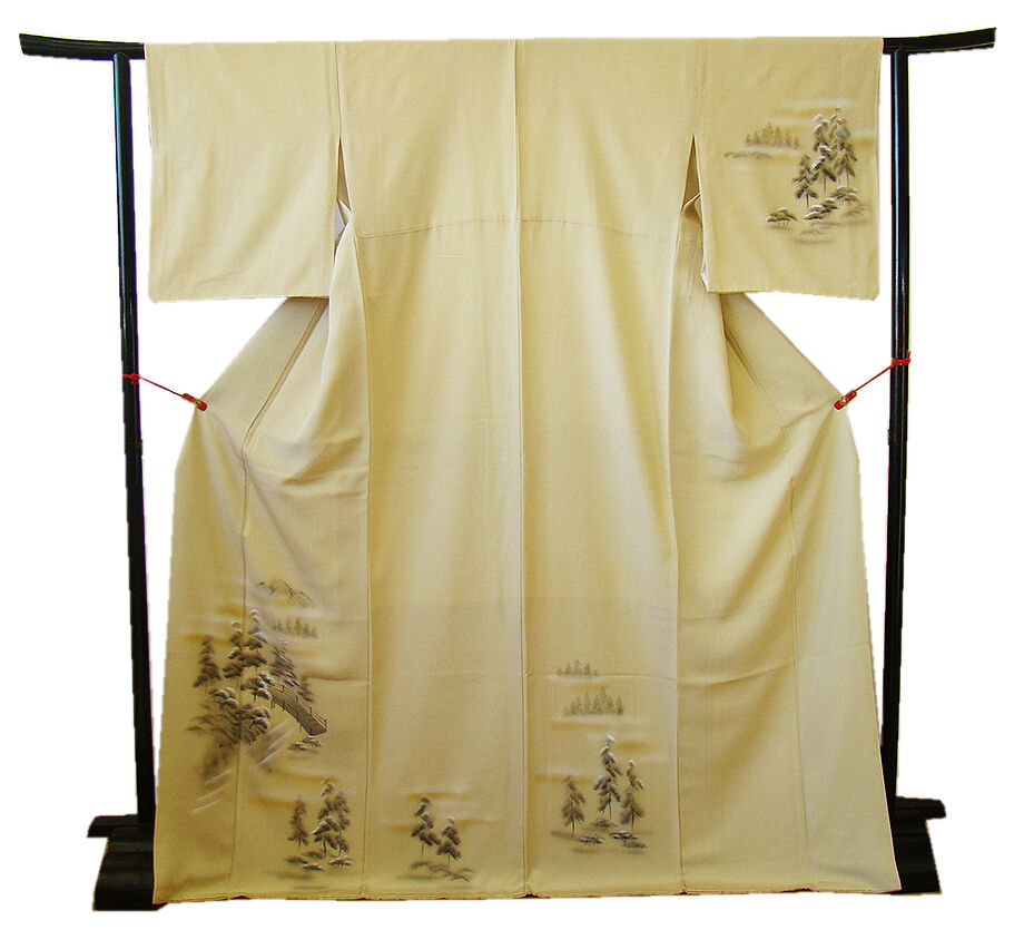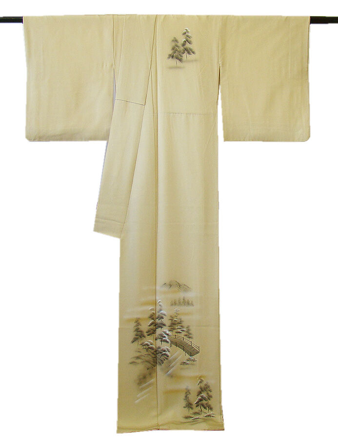 | 商品説明 | こちらのお品は「袷」ですので10月から5月までお召頂ければと思います。 とてもしなやかで柔らかな手触りの着心地良い重めの上質な極上ちりめん地の生地、 落ち着きある蒸栗色地に金茶色ぼかしに黒、鼠、白色等の立木や風景柄の染柄、 気品に満ち溢れた彩りが正統派のお着物として一枚は欲しい逸品の素敵なお着物です。 八掛は光沢ある濃い共色(正絹)、幅広い年代の方にお召頂けます。 |