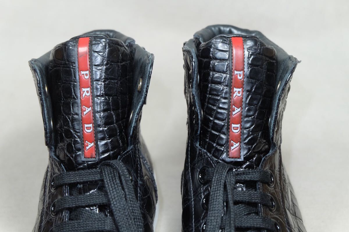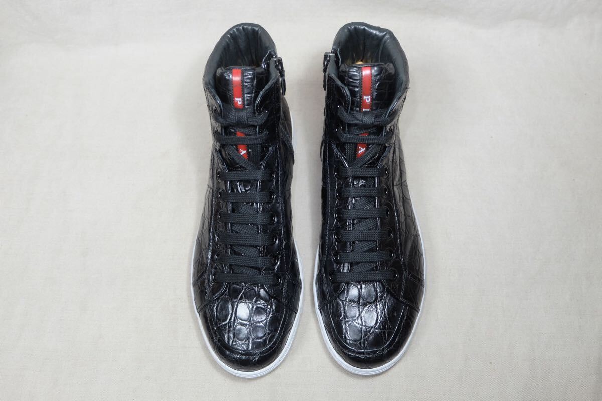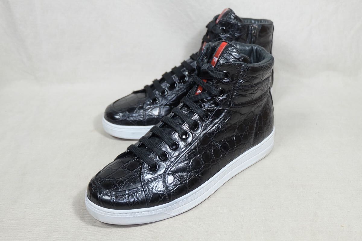 定価50万以上 至高の1足 数回着 PRADA プラダ 最高級リアルクロコダイルレザー使用 美しくサイドジップハイカットレザースニーカー UK5.5 イタリア製高級手製革靴 ブラック OPTIジッパー使用 クリーニング&メンテナンス済み | |||