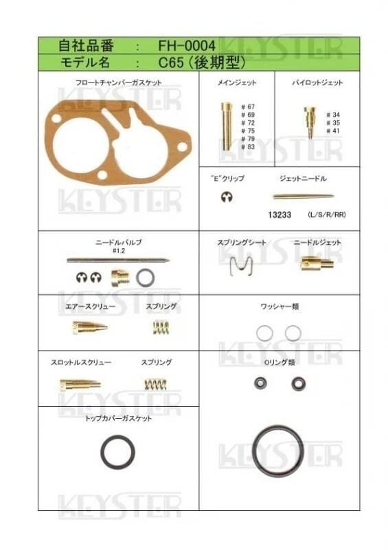 | キースター 燃調キット スーパーカブC65(後期型)用キャブレター オーバーホール&セッティングパーツセット (FH-0004) |