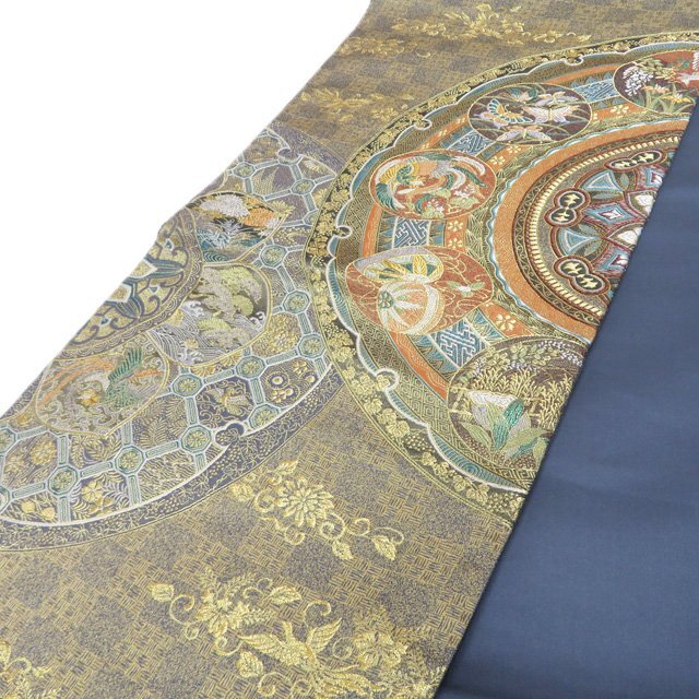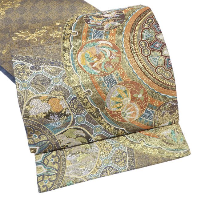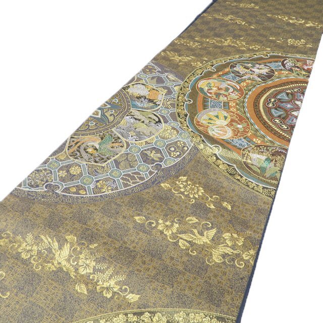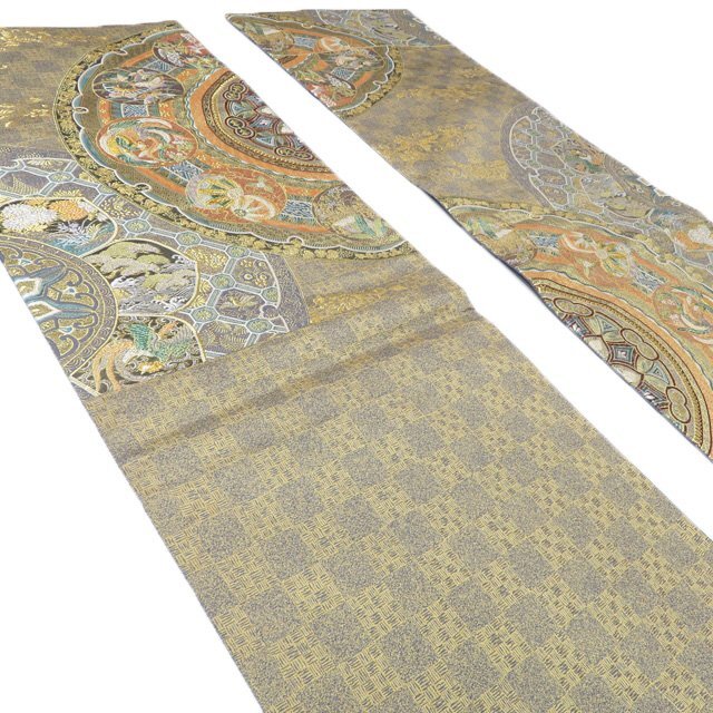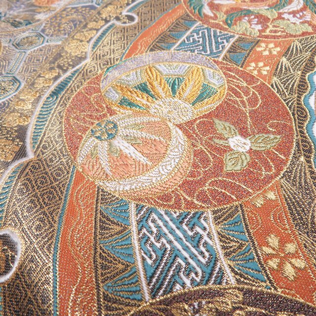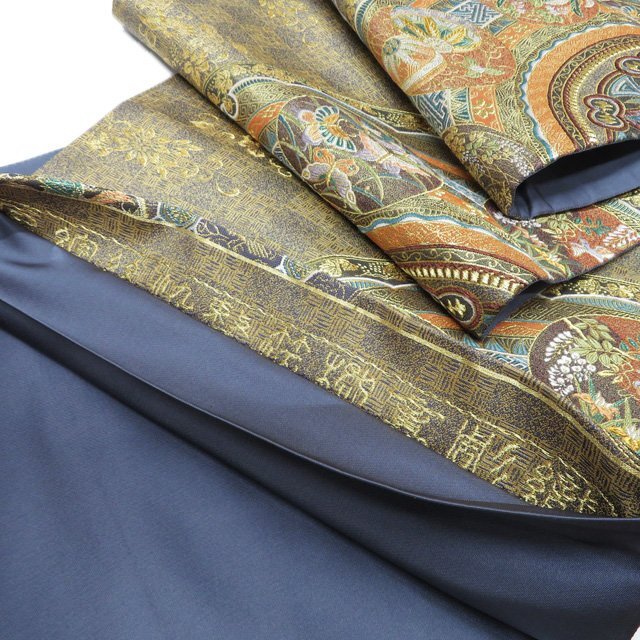 サイズ 430cm x 31cm 素材 正絹 商品ランク B お色 多色 金 裏側所々白く薄汚れがございますが、表側は綺麗でまだまだご着用いただけるお品物です。 一部商品は実店舗・他サイトでも並行して販売しておりますので売り切れの際はご了承ください。 その他多数販売中 ku- | ||||||